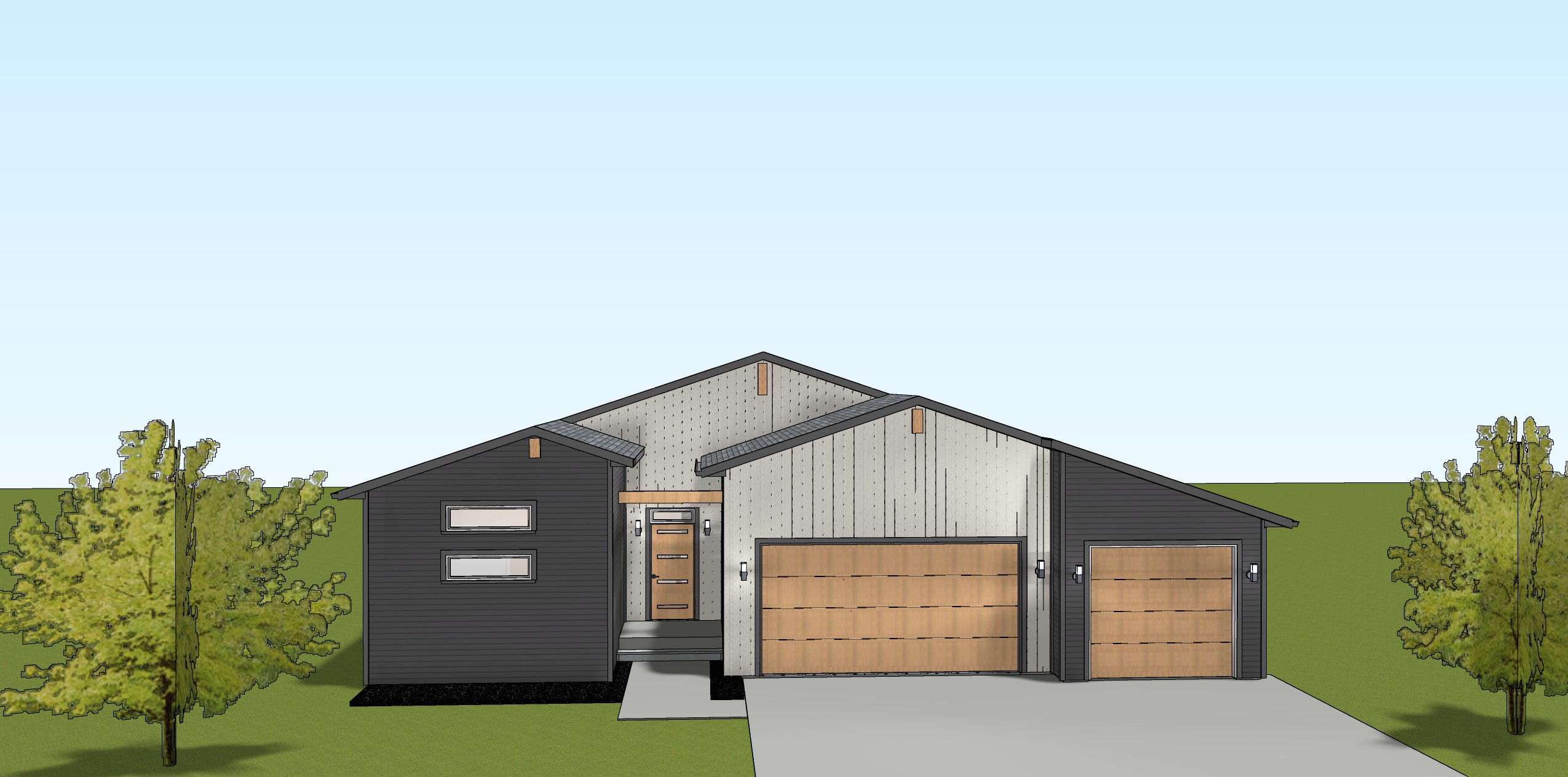 make this house more realistic and add a bright morning sky the house is well it is morning and bright and the setting is to be in a residential single family new construction lot