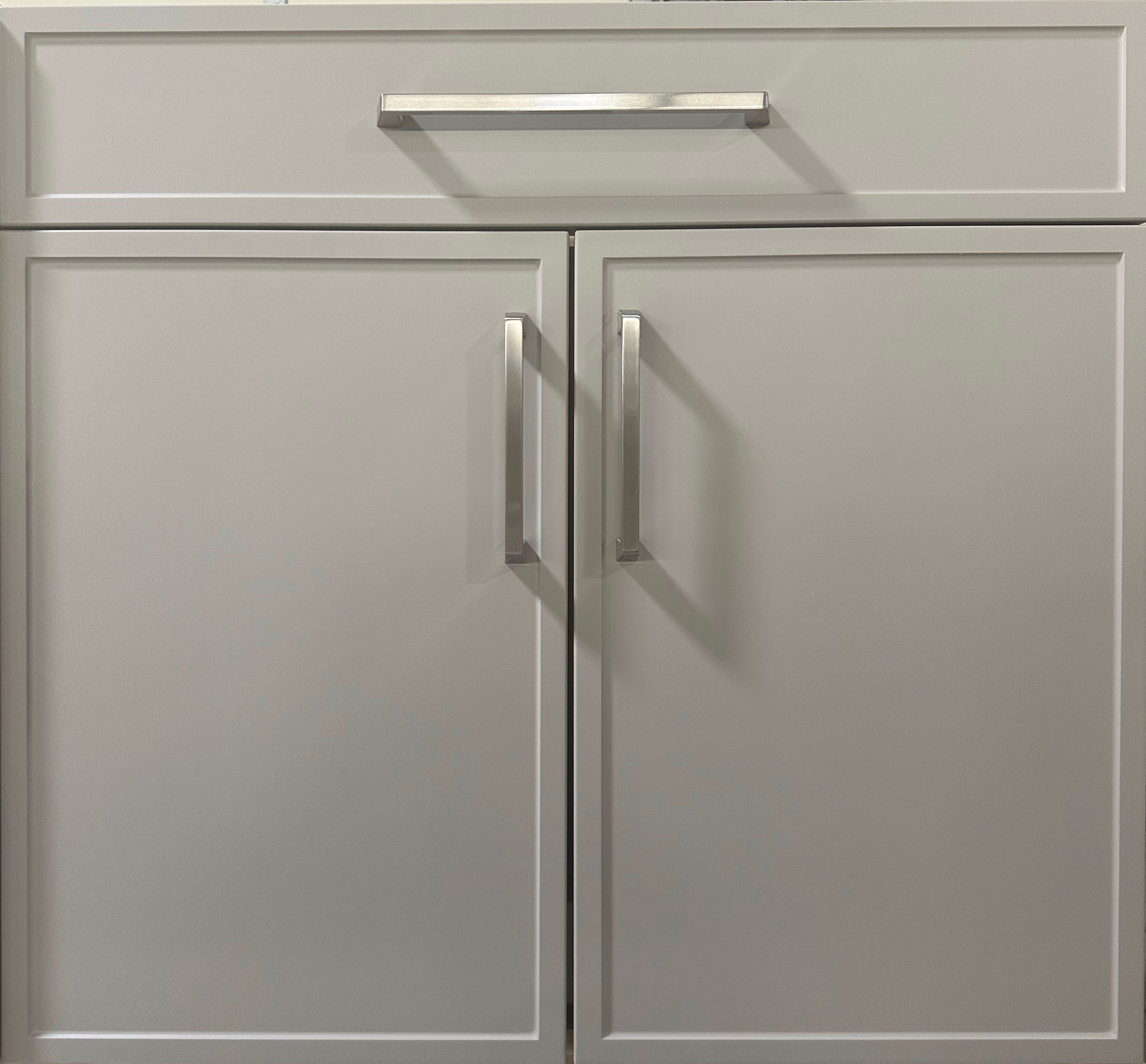 do not change the cabinets in any way preserve the exact cabinet colors materials finishes dimensions door and drawer styles hardware spacing alignment and all geometry exactly as shown do not alter the countertop shape backsplash appliances flooring lighting fixtures or wall structure only remove the construction materials clutter and mess from the scene clean the room and make it look finished and staged add a few simple tasteful home accessories appropriate for the style of the space but do not add or remove any furniture windows or architectural elements maintain the original lighting direction and realism enhance clarity and polish the photo while keeping the cabinetry and room design completely unchanged do not alter the lighting to keep the cabinet colors as they are in the image make this a standalone cabinet with a simple countertop