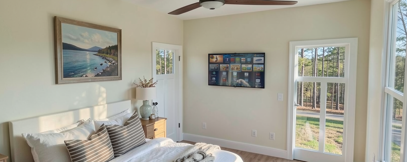 overall style modern organic spa bathroom with warm neutral palette natural materials and clean minimalist lines color palette soft whites warm beige sand tones natural wood tones charcoal gray accents creating a monochromatic soothing scheme wall treatments primary walls in crisp white shower tub surround featuring vertical wood look tile or slat wall paneling in light natural oak blonde wood tone narrow vertical linear pattern creating subtle texture and visual interest white trim and molding for clean contrast flooring large format tile in light gray concrete appearance matte finish with subtle texture neutral stone look porcelain creating modern seamless look shower tub area tub shower combination on the right side of the room with floor to ceiling curtain full length linen curtain in natural beige oatmeal on ceiling mounted track brass gold shower fixture with rainfall showerhead horizontal window for natural light above tub surround clean white tub vanity floating dark charcoal black countertop with integrated or undermount white sink modern vessel or rectangular sink open shelving below in matching dark finish brass gold single handle faucet minimalist design without upper cabinets lighting woven rattan natural fiber pendant light in elongated teardrop shape warm ambient lighting natural light from window accessories styling wooden branch style wall hooks for towels modern tree branch design waffle weave towels in cream natural tones woven natural fiber baskets small potted greenery olive branch or eucalyptus organic spa aesthetic with natural textures throughout key features emphasis on natural materials wood woven fibers stone warm metallics in brass gold layered neutral textures clean uncluttered surfaces organic modern aesthetic mood calm spa like warm minimalism with natural organic elements this design would beautifully transform your bathroom into a serene retreat would you like me to adjust any elements or add more specific details
