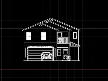 generate beautiful elevations renders with light inside with white stucco on front walls and gray tile roof top down from above with sunlight at dusk