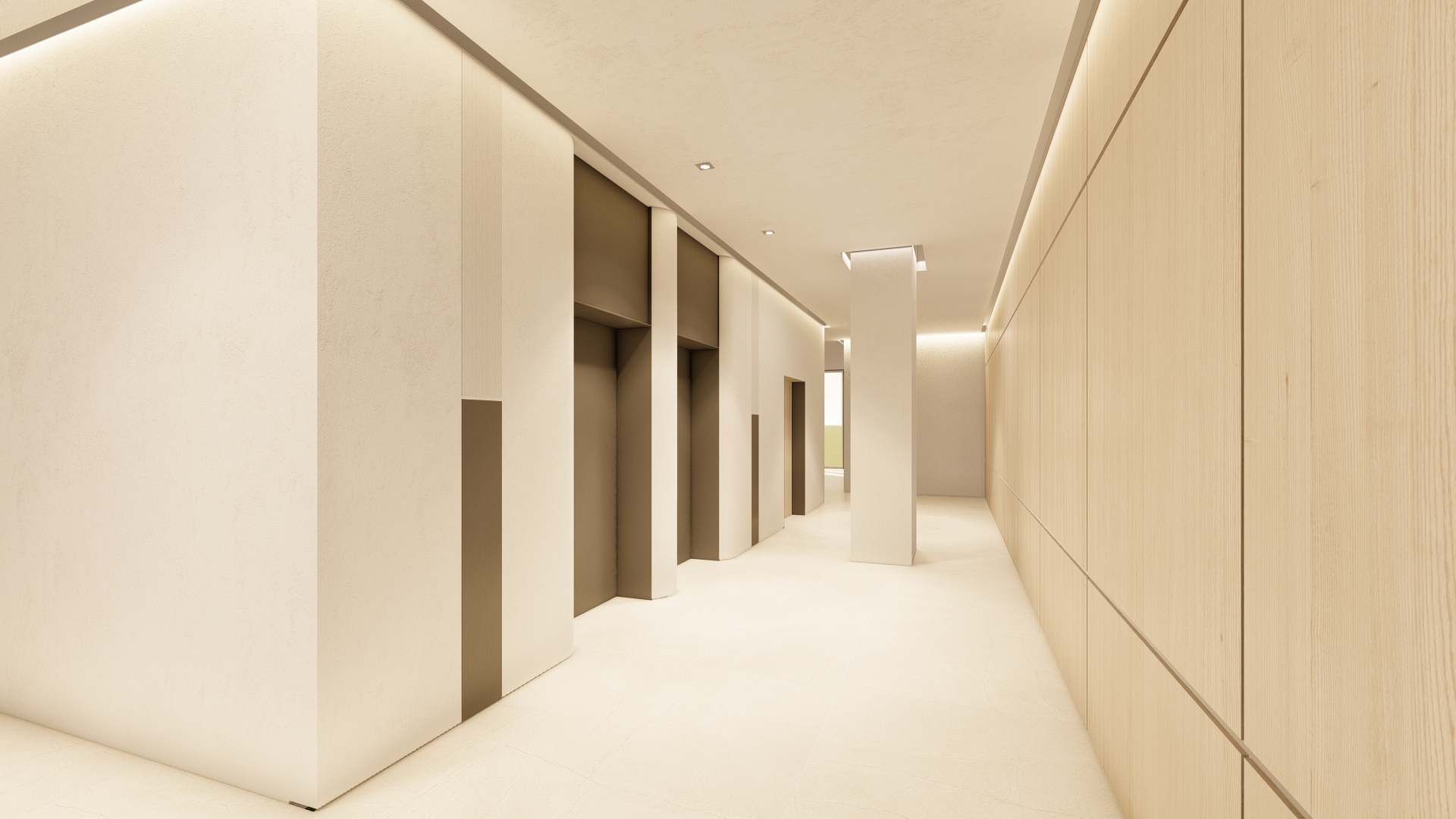 add honey tone wood texture to the wood wall niche enhance lighting morning sunlight add a real dark brushed aluminum texture where the dark texture is
