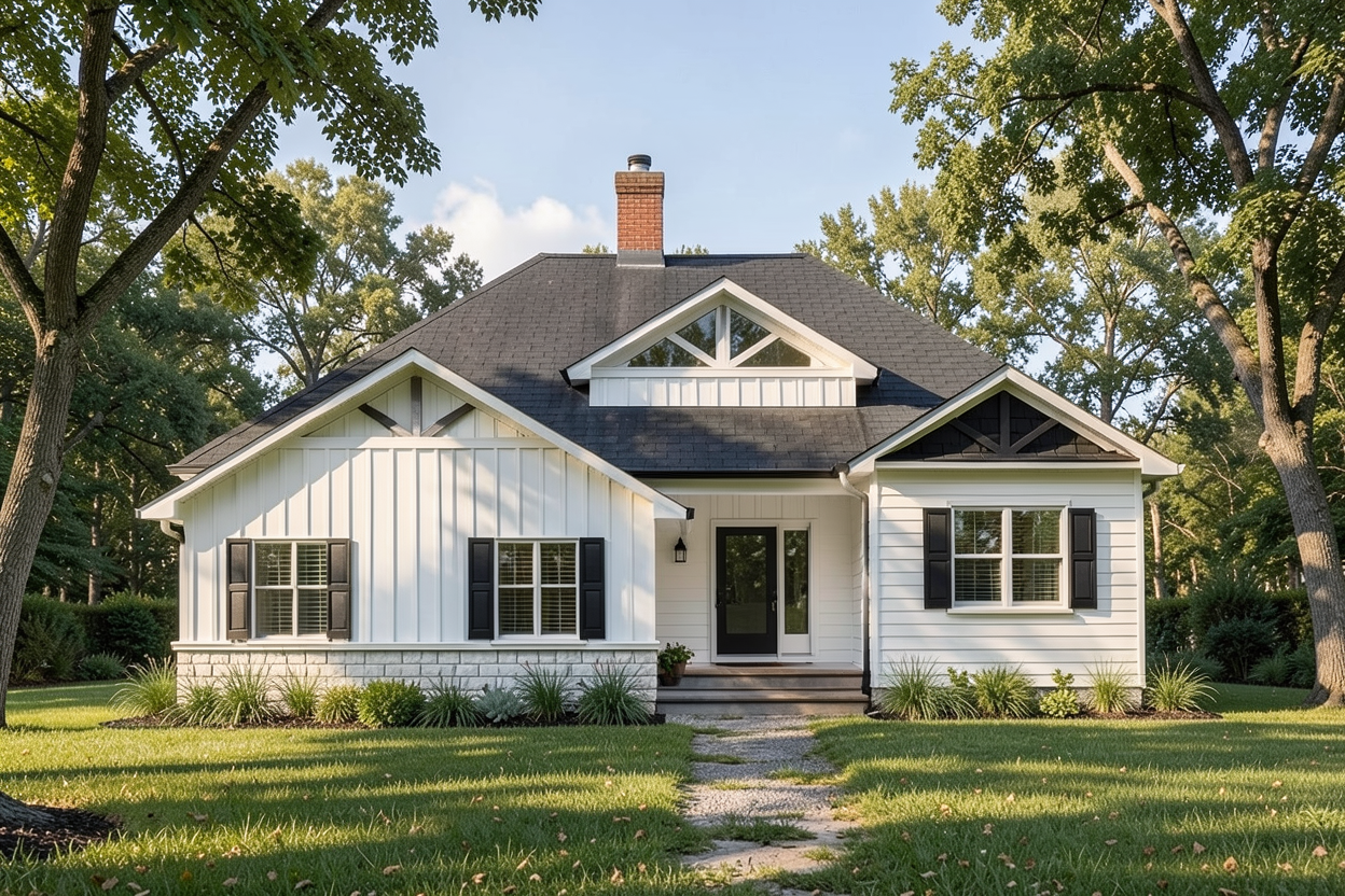 create an ultra realistic photo of this home modern white and black finish