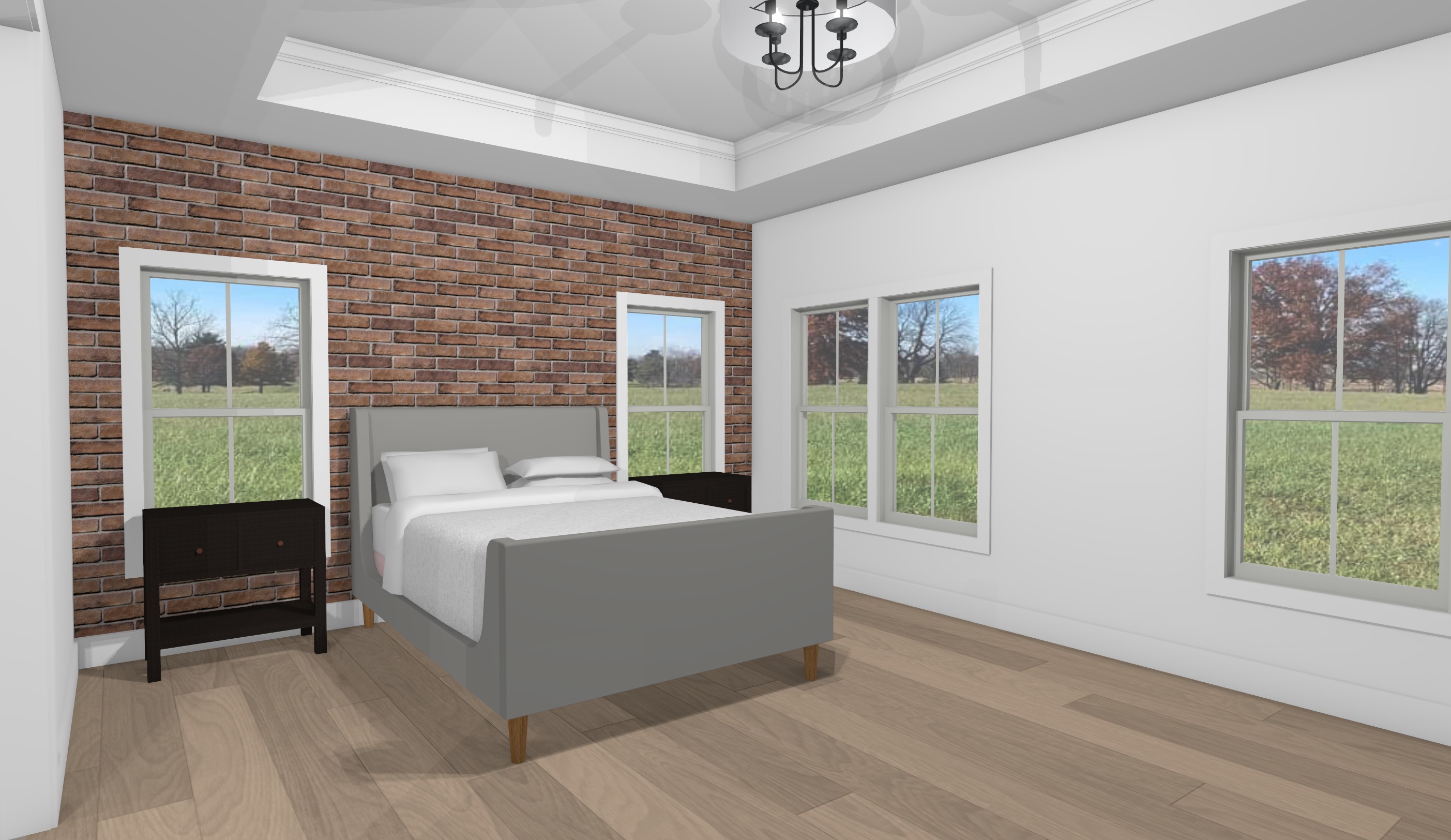 make this image a photograph and make the bed more cozy add a rub to room that goes under the bed and fills most the center of the room