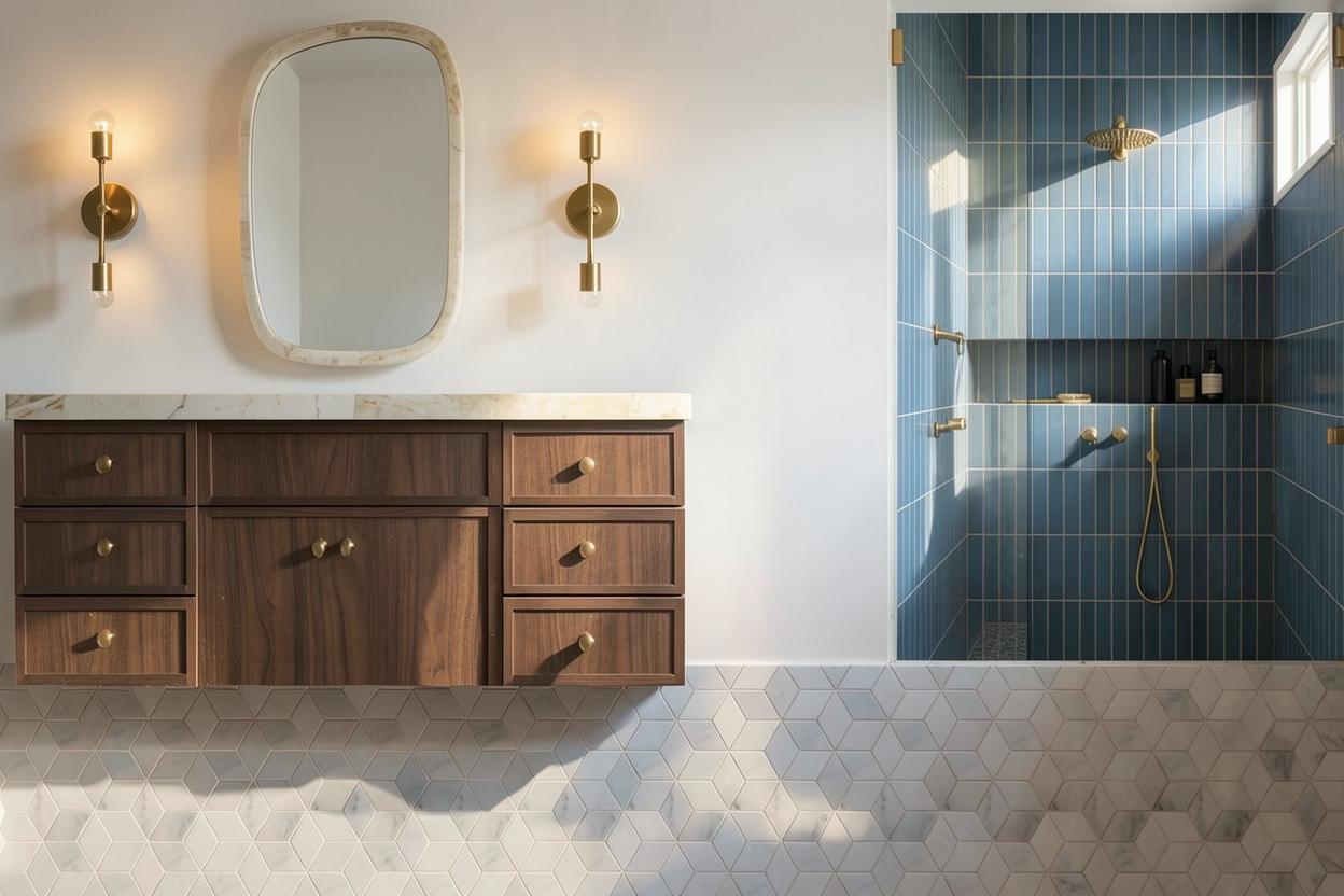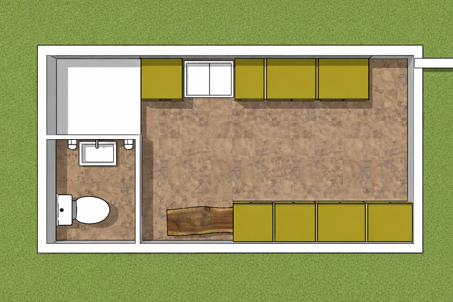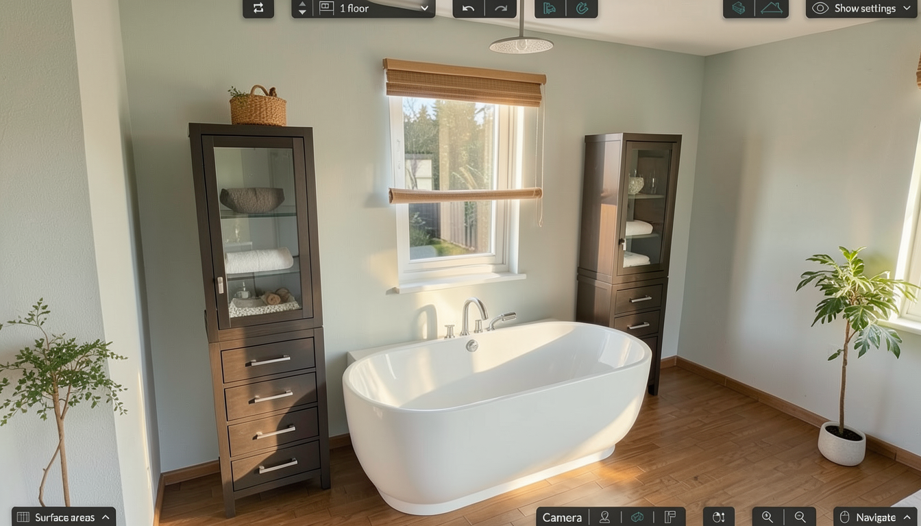 keep all measurements and materials and components the same make look realistic make the all the cabinets in white oak rift cut and the island in white remove shadows and make the oak with finer lines