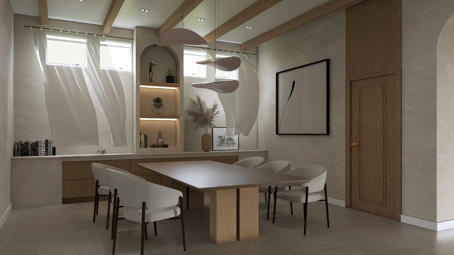 award winning architectural photography interior shot hyper realistic crisp neutral natural white daylight mixing with subtle ambient illumination 4000k color temperature creating a clean balanced and striking spatial atmosphere distinct defined shadows and natural even light bounce across surfaces realistic global illumination clear specular highlights shot on 24mm tilt shift lens f 8 aperture iso 100 for sharp clarity 8k resolution highly detailed path tracing physically based rendering pbr v ray 6 style sharp focus pristine quality
