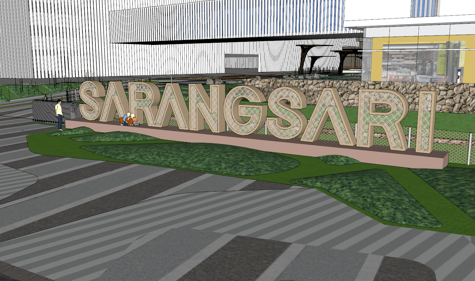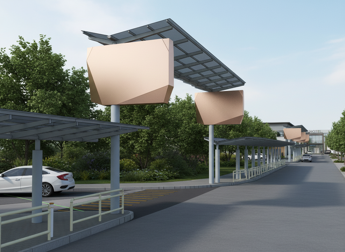 external building name signage mounted on a solid architectural concrete platform 3d brushed aluminum letters with warm white led backlit illumination soft halo glow realistic light spill on raw concrete texture surrounded by minimalist landscape elements subtle pathway uplights cinematic night ambiance moody sky uhd photorealistic architectural rendering