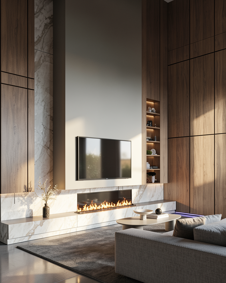 greige painted cabinets light oak flooring white walls and baseboard trim soft tan countertstools and quartzite countertops remove the pendants above island and carry backsplash to underside of upper cabinets and add undercabinet lighting