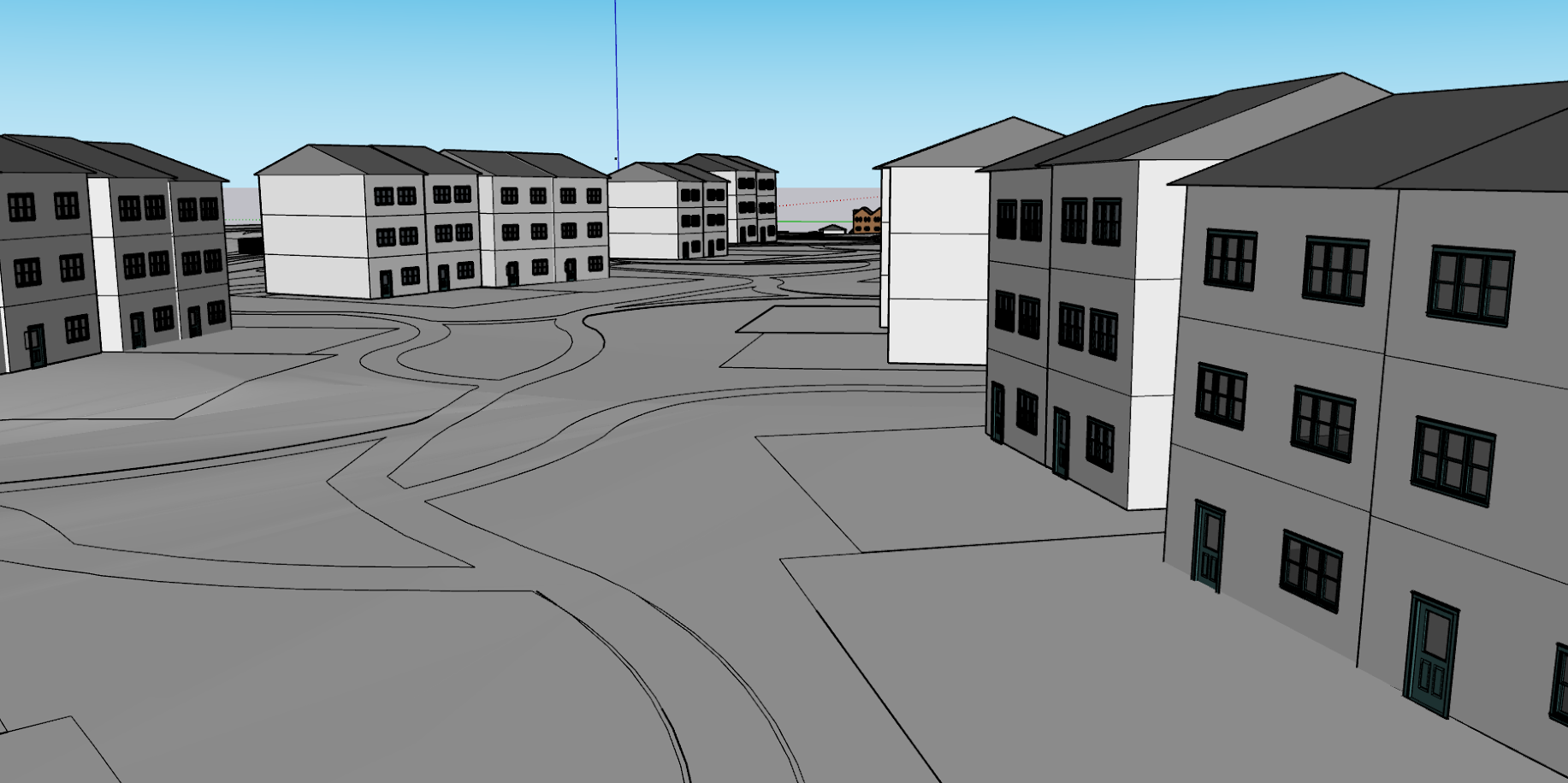 brick townhomes with planted paths and native southeastern us plantings and detailed buildings