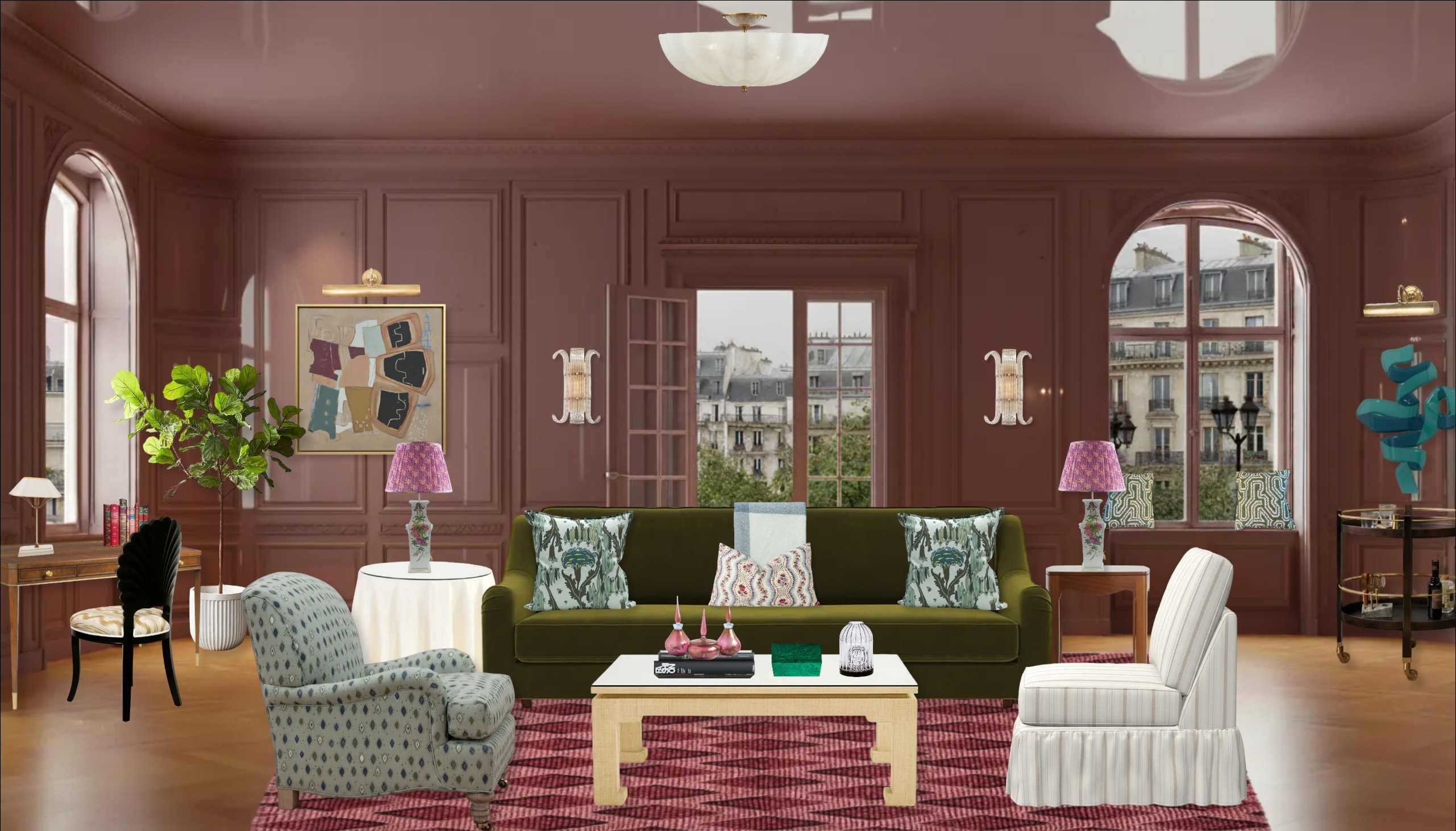 photorealistic interior photograph preserve all furniture materials colors patterns and placement exactly as shown preserve original camera framing and composition do not crop or reframe improve lighting realism only with natural directional light restrained shadow depth and spatial clarity maintain a bright daylight exposed interior with lifted midtones interior surfaces should read light and clear not moody or cinematic preserve high gloss painted surfaces with clear specular highlights and reflective sheen do not matte or soften reflective finishes avoid dramatic lighting and heavy contrast no redesign no object changes no stylization emphasize gravity and physical grounding furniture sits firmly on the floor pillows compress naturally into upholstery tabletop objects rest with realistic weight and wall mounted objects read as properly mounted with subtle contact shadows and depth separation do not edit the candle on the coffee table at all