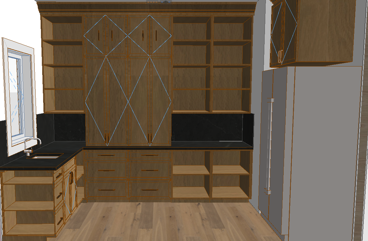can you make the cabinets less grainy less sheen on the quartz