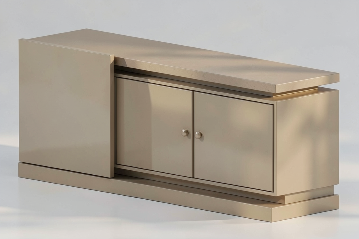 maintain all the materials the feature wall is in soft texture line laminate finish a cove lighting on both sides of the recessed ceiling located at the middle of the render soft sunlight from both sides of the space illuminating the space the dining table to be in lighter tone colour