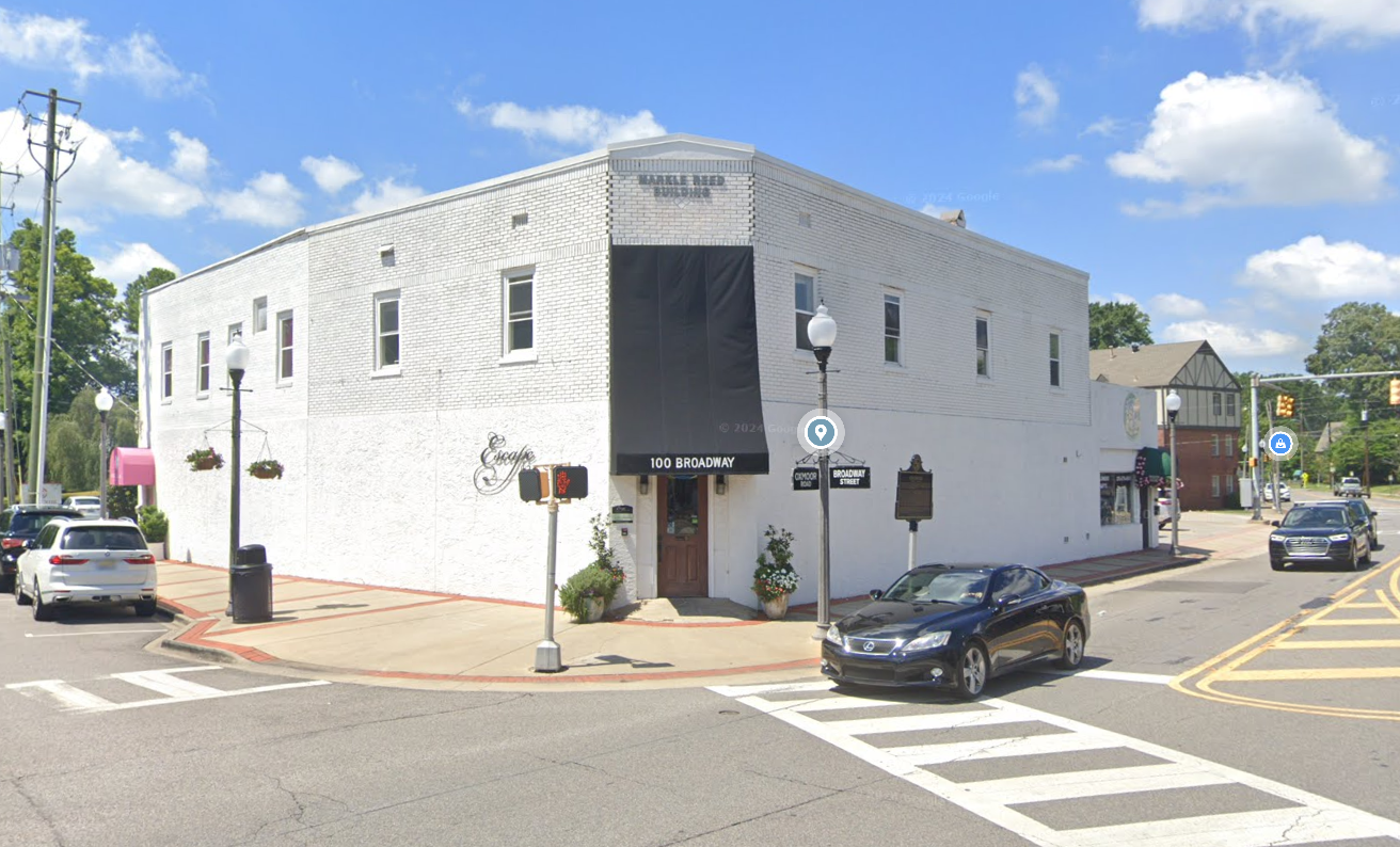show this building as a revitalized mixed use building with large windows on the first floor and depictions of restaurant activity inside those windows show cafe tables on the sidewalk with people dining make a new sign for the entrance at the corner with cursive lettering that says wil cheval