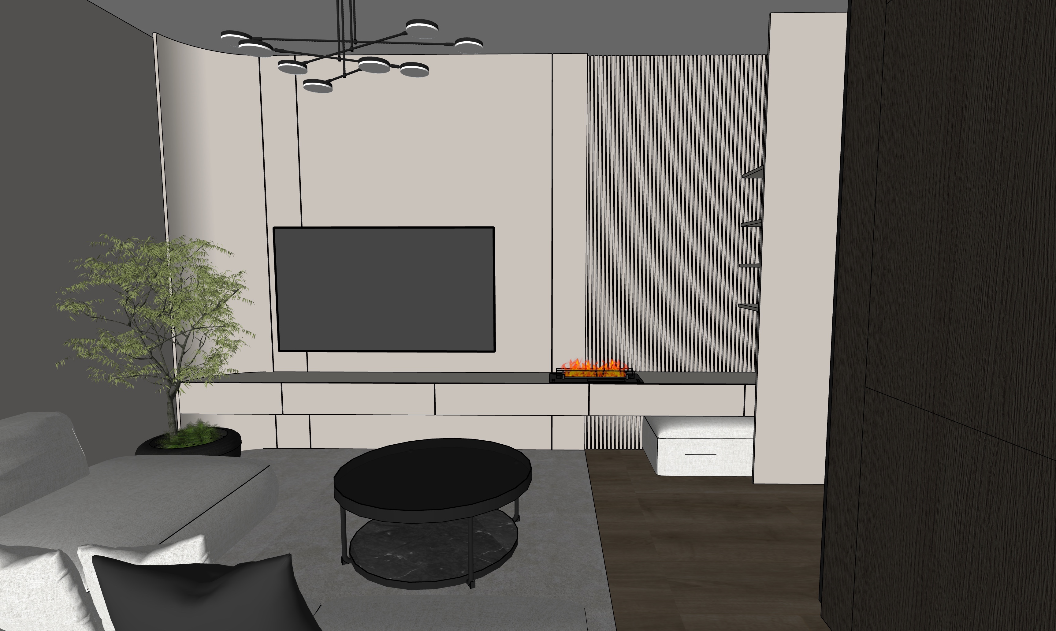 the furniture is all mate material the beige material is cashmere the wood texture is grey brown oak