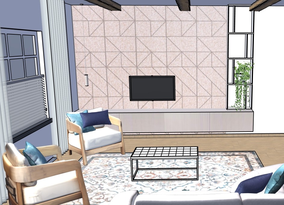 add some decorative items on the shelves like a plant use neutral colors and a bit of blue for these decorative items