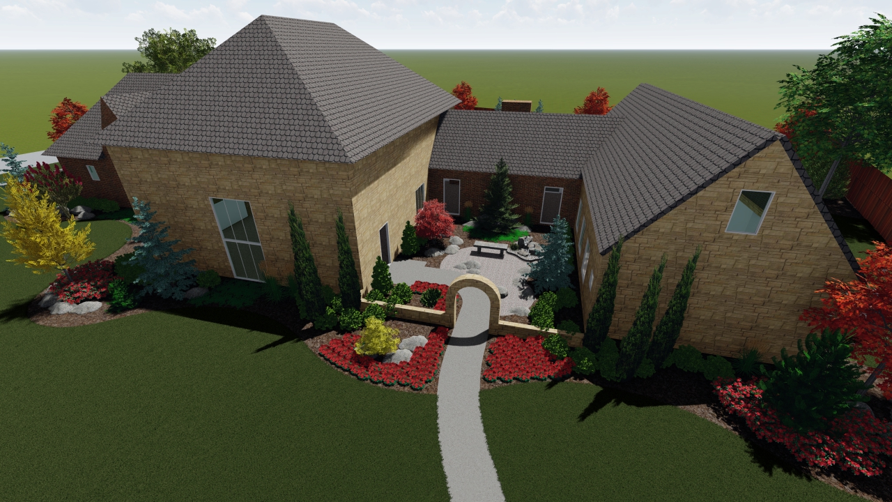 the white walls are actually red brick dont add expansion joints on the concrete the concrete is a light tan finish add a couple trees behind the fence and property