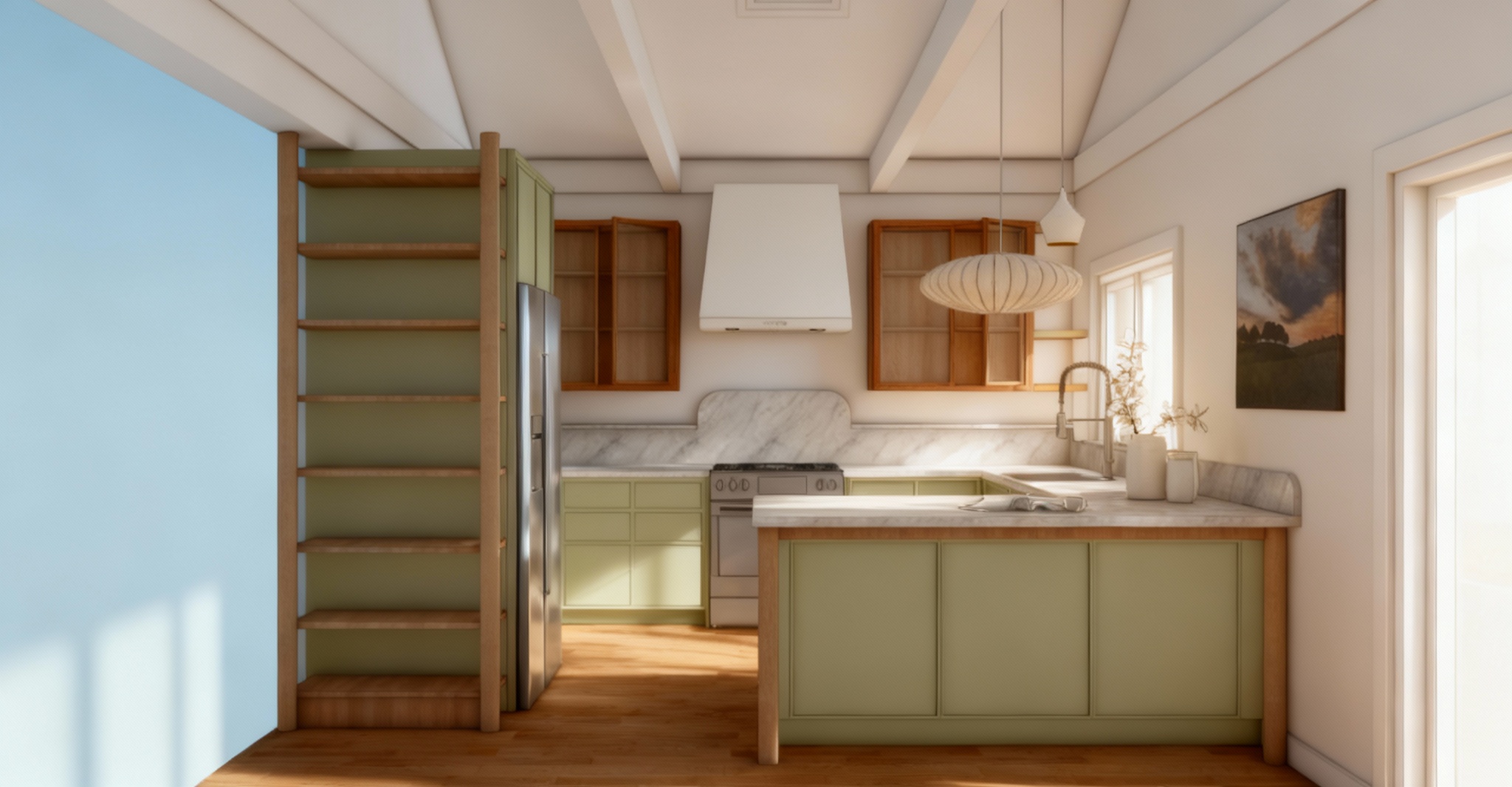 very light shadows very soft contrast keep ceiling white and opening on the left open