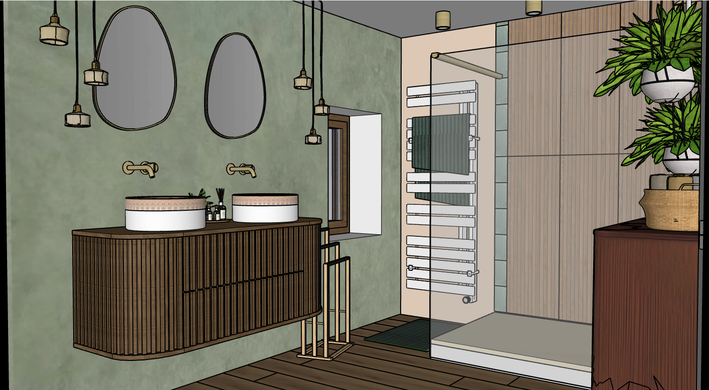 in the bottom left corner is a shower tray not a bathtub the floor is covered in wood effect tiles across the entire surface