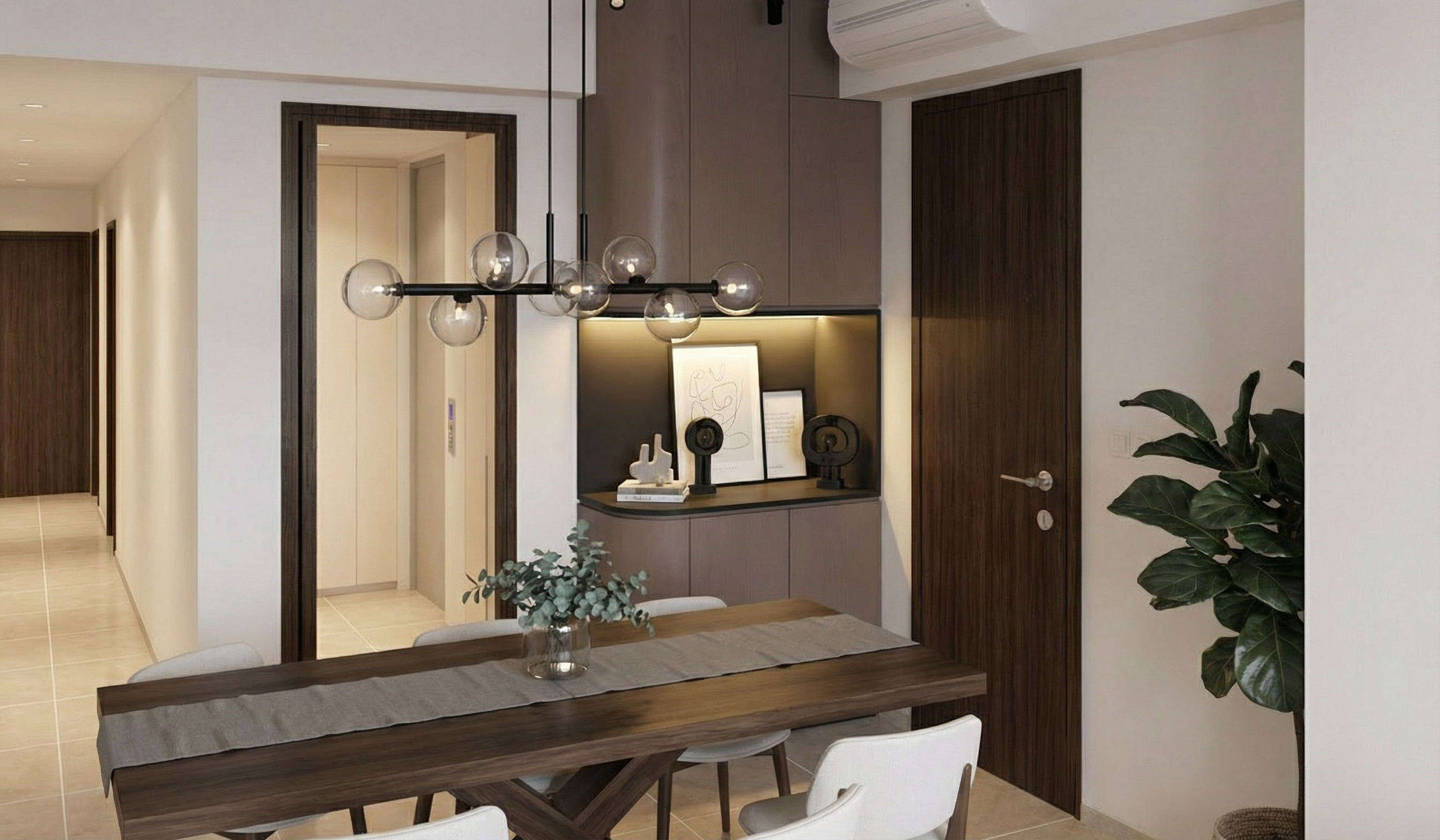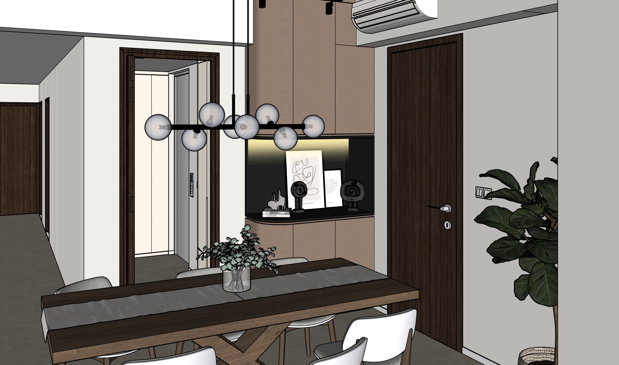 colour and wood texture less grains to remain as per original pictures floor in light beige tiles cabinet in muted dark ash blush as per original picture