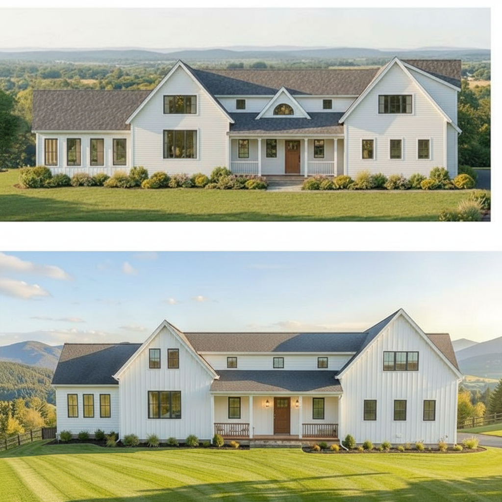 create a photorealistic top view site plan rendering match the reference image exactly do not alter any geometry the lake should only be in the blue area at the top of the image green areas are a natural native texas landscape pink area is grass lawn sun faded late summer tone brown area is brown gravel driveway angular gravel texture realistic compaction subtle tire patterning smaller blue shape is a natural pond irregular natural edges shallow to deeper gradient natural coloration bigger blue shape at top of the image is the lake red areas are limestone boulder outcroppings contemporary lakehouse on inks lake texas hill country keep all site geometry and relationships identical to the reference shoreline bulkhead line dock walkway tie in house position and any terraces paths shoreline water match reference lake occupies the portion of the frame consistent with the reference plan view water body shape must match exactly calm blue green water at normal level with gentle wind ripples and realistic reflections where visible from above shoreline has a concrete bulkhead with low native grasses and gravel walking path immediately above it retain exact bulkhead geometry and alignment architecture do not alter retain the exact structure from the reference window arrangement rooflines foundation height proportions two story portion is a screen porch keep its openness and scale exactly as shown materials white stucco siding light gray standing seam metal roofing exposed timber rafter tails accurate glazing with realistic reflections no warped fenestration use the topo lines from the reference to build an accurate site behind the bulkhead no smoothing no reinterpretation minimal site disturbance native drought tolerant hill country natural landscaping planting scattered live oaks ashe juniper dry golden grasses with occasional green pockets prickly pear accents only where consistent with the reference lighting late summer afternoon bottom left shadows cast top right physically accurate direction intensity subtle atmospheric depth warm haze over distant low hills if visible hyper real architectural visualization high micro texture detail stucco metal seams wood grain concrete bulkhead gravel balanced hdr crisp edges crisp shadows vibrant clear sky if included output 8k photoreal render plan site emphasis no diagram styling not flat vector realistic materials and light