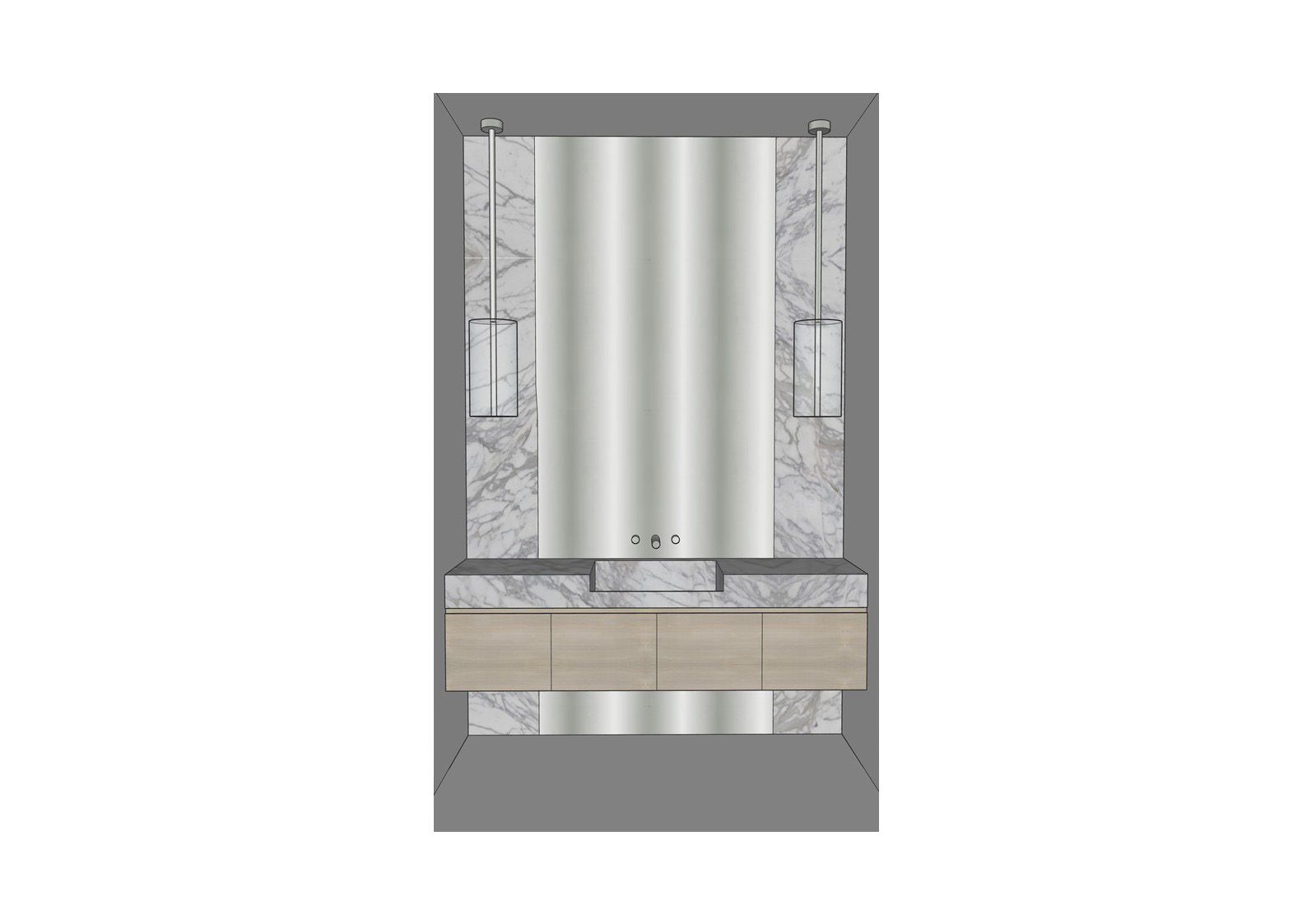 transform the provided elevation into a hyper realistic interior photograph that is indistinguishable from a real professionally shot interior design photograph this must read as a real space captured by a camera not a rendering not a visualization not architectural cg not concept art and not an illustration geometry lock non negotiable preserve the exact original geometry layout proportions ceiling details wall depths panel divisions openings doors cabinetry locations millwork dimensions built ins and circulation paths with zero architectural changes nothing may move scale simplify or be reinterpreted geometry must remain absolutely unchanged camera derivation critical derive the camera position height angle and framing strictly from the uploaded elevation eye level interior photography centered or naturally balanced composition 24 35mm interior lens feel no dramatic angles no stylized framing do not reuse or approximate camera framing from any previous image remove all drawing artifacts completely remove all linework cad edges drafting outlines diagrammatic shapes sketch artifacts nothing may appear outlined flat schematic or illustrative the elevation must be visually reinterpreted as a finished real interior photograph material realism rules wood if present smooth solid plank material extremely subtle restrained grain matte or soft satin finish only no graphic patterns no decorative striping no visual noise wood must absorb light gently never glossy or sharp fabric upholstery if present soft compression subtle seams gentle shadowing natural fabric texture no flat color blocks stone slabs if present light natural veining soft organic variation low contrast no symmetry no bold or busy patterns stone must feel heavy and grounded walls fine surface texture slight tonal variation never flat paint edge construction realism all edges corners joints and transitions must be softly broken and physically realistic no razor sharp corners no cgi perfect edges slight construction tolerances only everything must read as fabricated installed and dimensional lighting photographic behavior lighting must behave like real high end interior photography natural daylight only unless otherwise specified realistic light bounce gentle shadow falloff uneven exposure distribution subtle brightness variation across surfaces avoid studio lighting uniform illumination over clean exposure global illumination look slight softness is preferred over sharpness camera image imperfections very important introduce subtle photographic characteristics gentle lens softness micro exposure variation natural contrast roll off mild atmospheric depth primary plane sharp background slightly softer the image must feel captured not generated absolute constraints no creative interpretation no stylization no exaggeration no added or removed elements any deviation from the original elevation geometry or intent is unacceptable negative prompt always include architectural rendering 3d visualization cgi unreal engine octane vray sketchup look flat textures graphic lines outlined edges over sharpened studio lighting concept art illustration ai look plastic materials glossy wood high contrast grain perfect symmetry keep design as shown in the picture keep the design as it is in image light cabinets are white and brown cabinets are white oak keep design in the image as it is