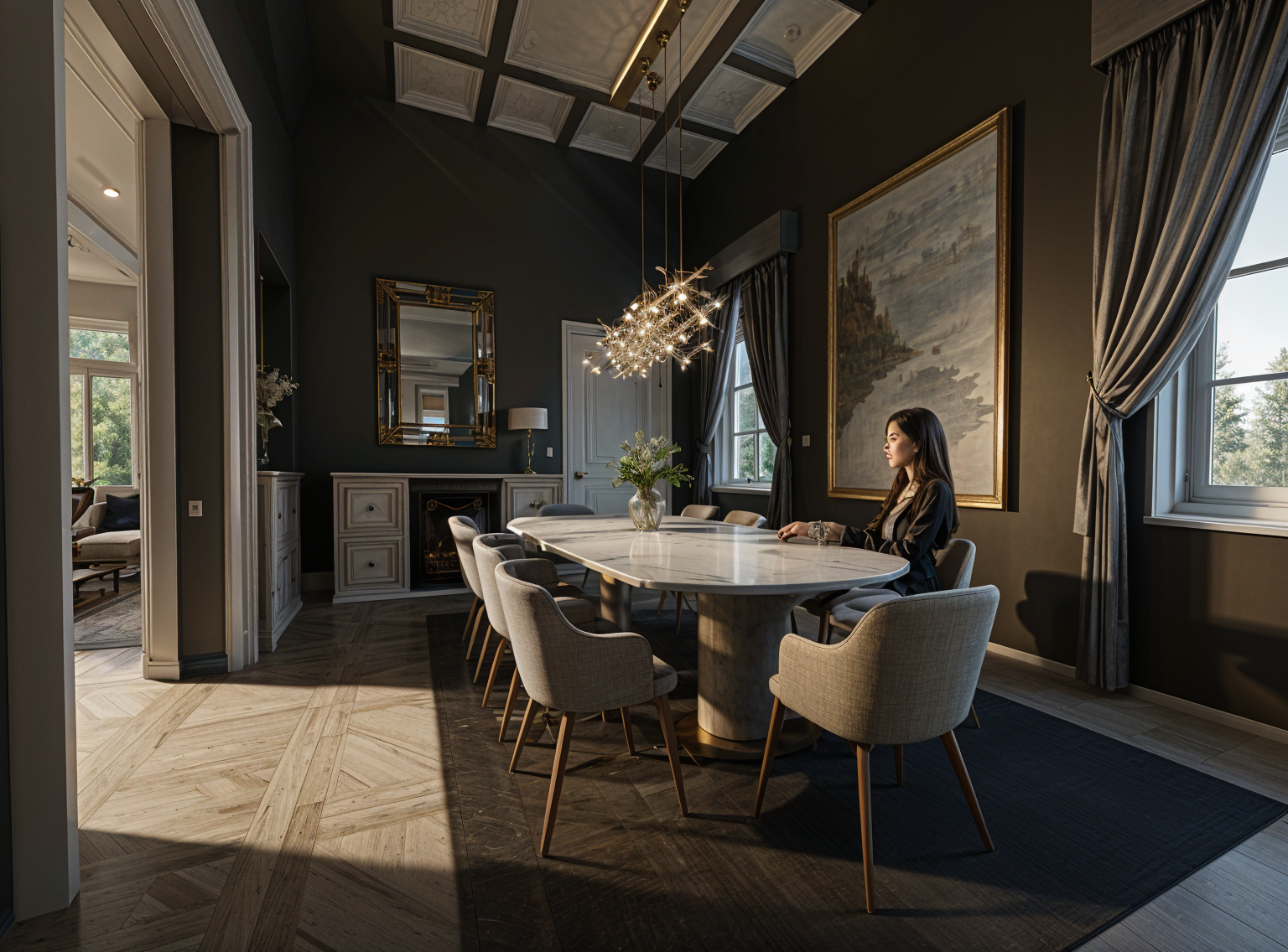interior shot ultra realistic interior render of a luxury villa high end architectural photography style maintain the original colors and textures of the project preserving material accuracy wood marble glass metal fabric emphasize natural and artificial lighting balance with physically correct reflections and soft global illumination path traced render quality corona renderer aesthetic realistic shadows and caustics volumetric light diffusion depth of field and cinematic exposure 16k ultra resolution ultra detailed pbr materials ray traced reflections perfect white balance hdr lighting from panoramic windows render like a professional architectural visualization studio mir brick visual luxigon