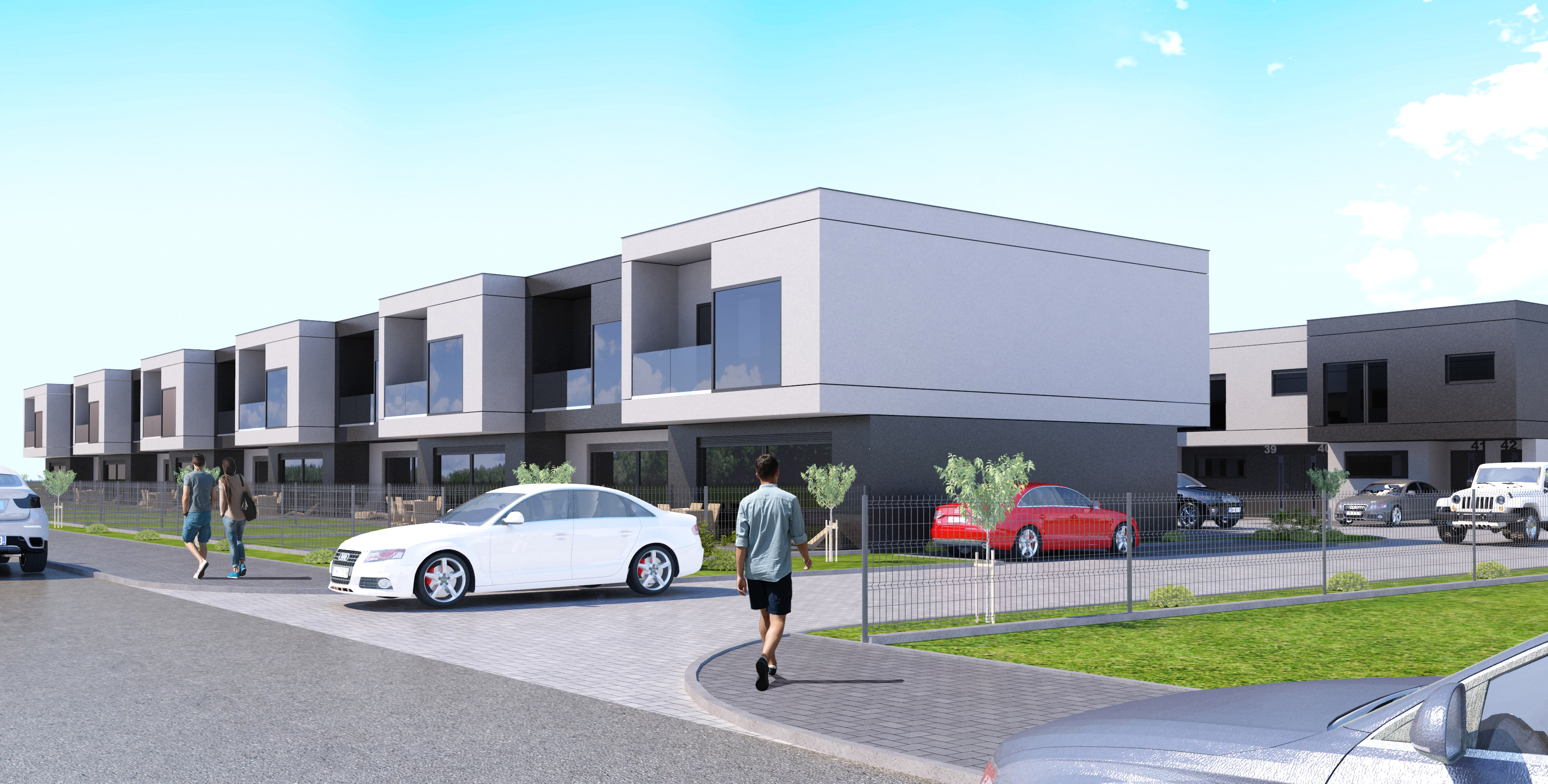 create a photorealistic view do not change the shape of the buildings do not add any inscriptions do not change the inscriptions of numbers and registration plates wet surface spring morning