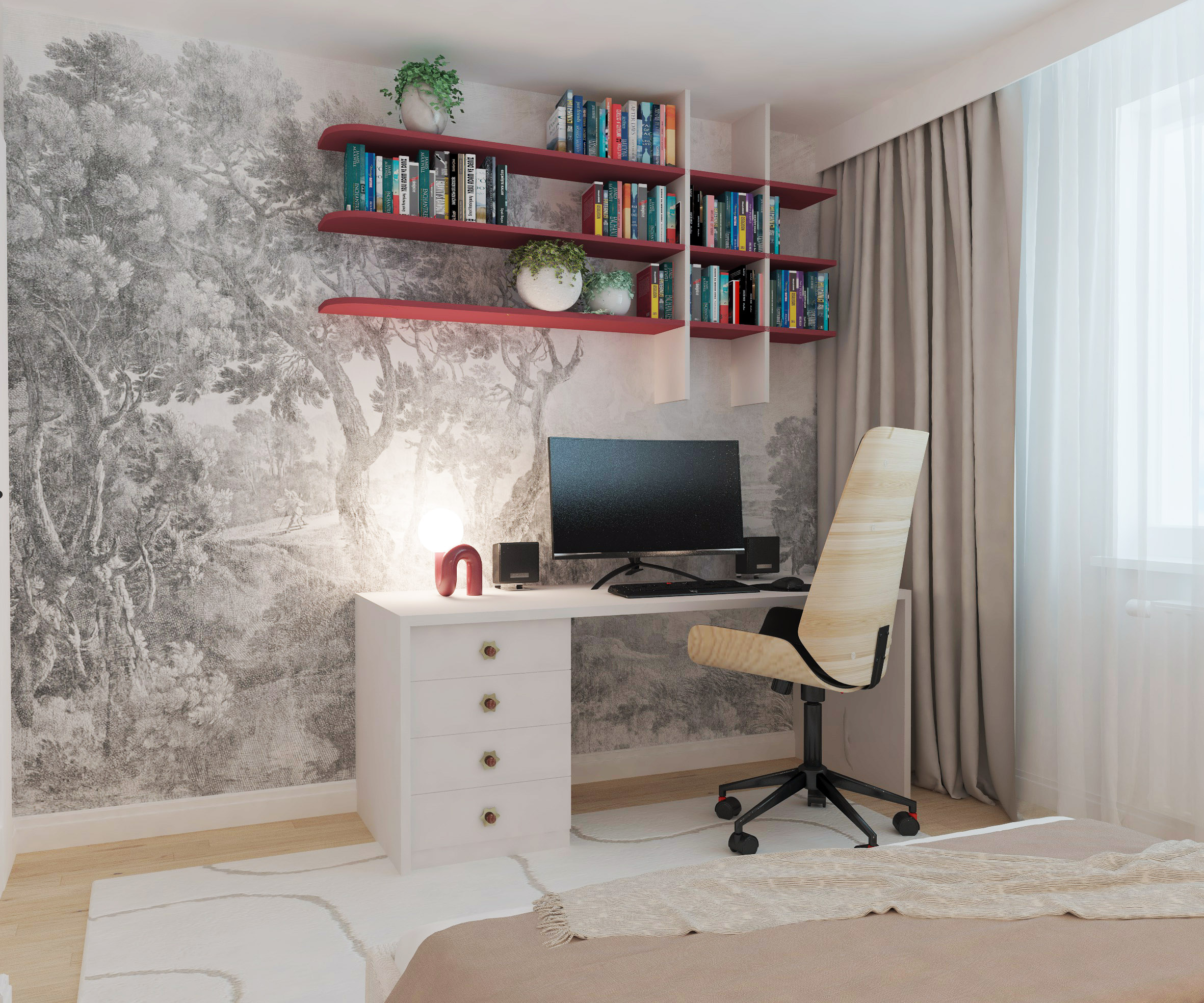 improve the light do not change the color of the wallpaper on the wall add decoration like in oficce