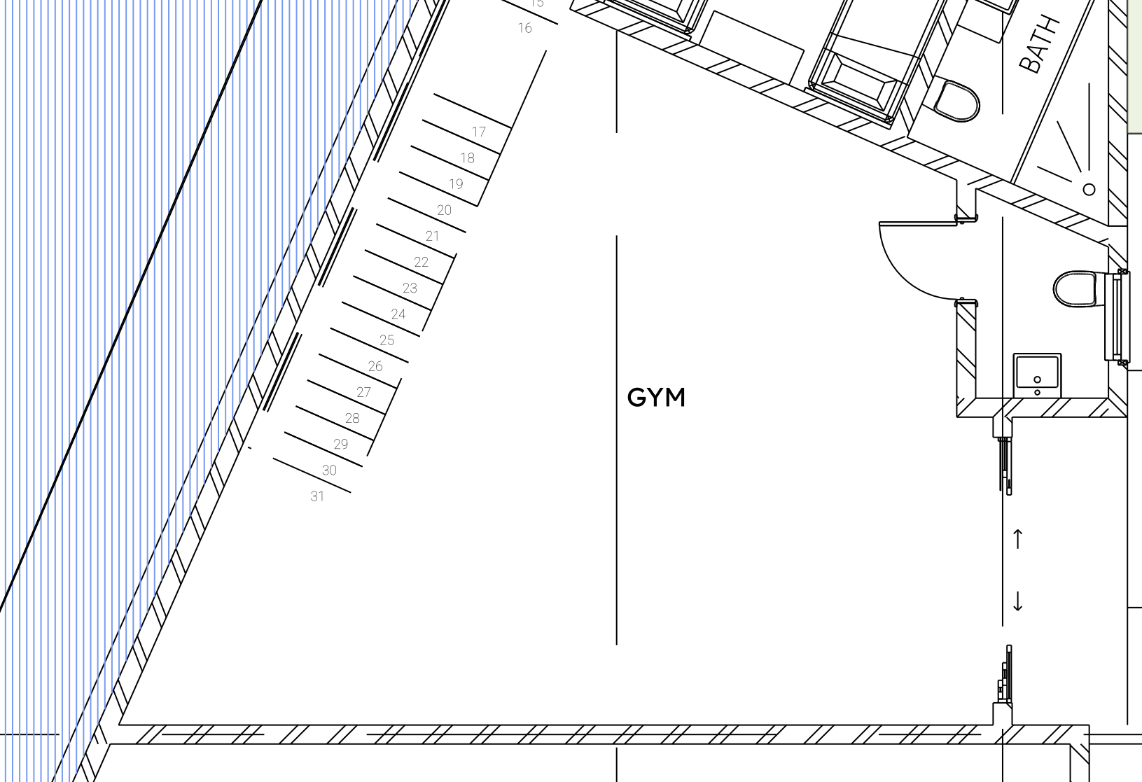 interior shot create a gym 3d view using this floor plan