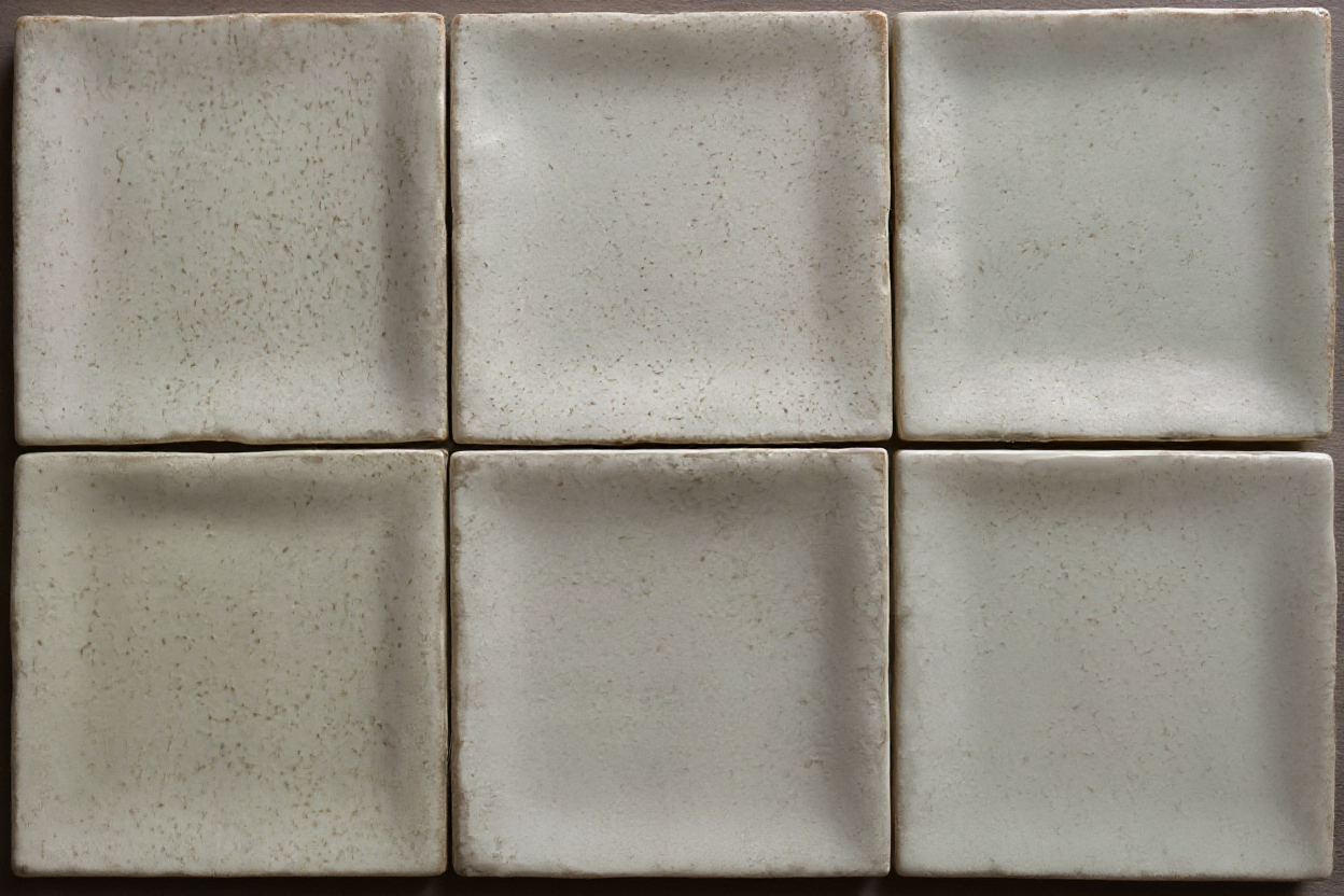 a serene wall of vintage ceramic tiles each square tile in a muted pale green color with hints of soft sage the tiles have a subtle glossy finish and delicate texturing that catches the light between the tiles fine white grout lines add a touch of definition the atmosphere is calm and soothing with a gentle harmony of colors that evoke a sense of tranquility and natural elegance