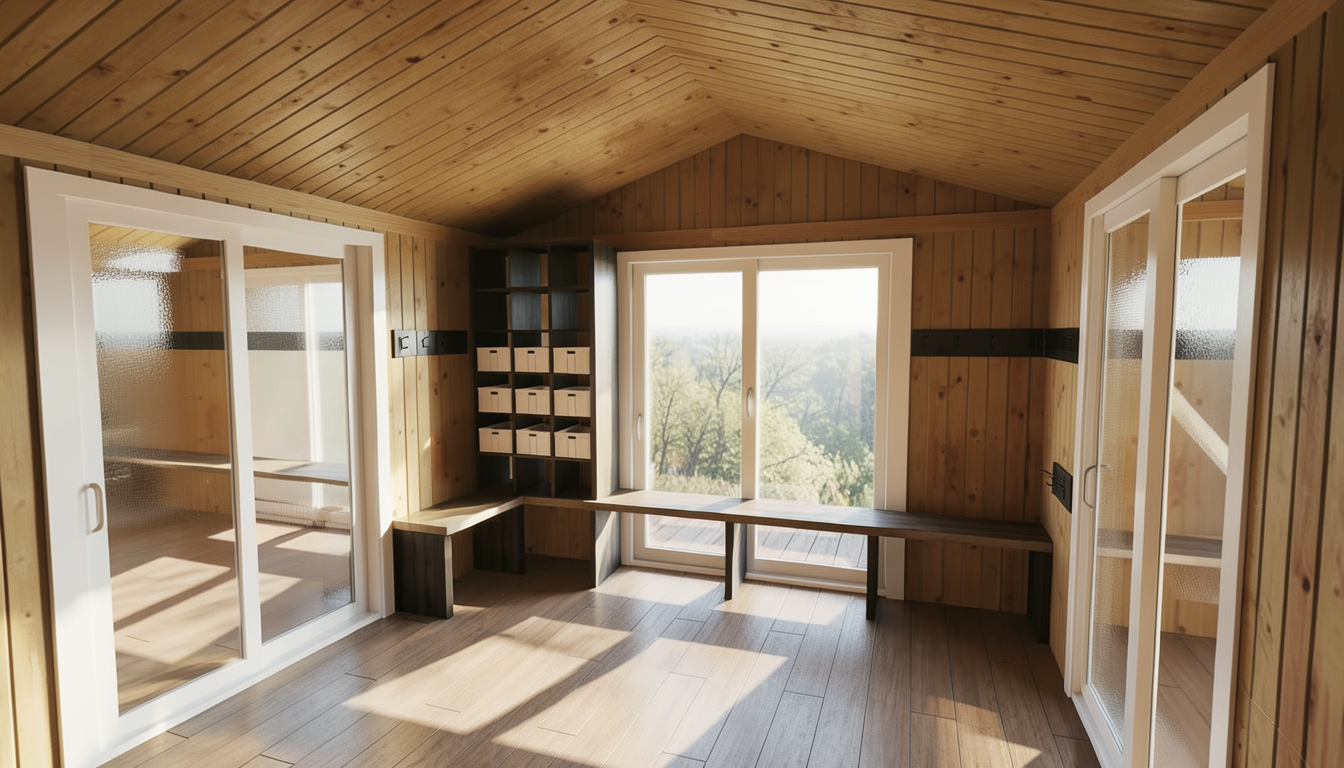 imagine a modern two story house with a dark gray steep roof and a rubbed beige and darker gray beige plaster and narrow brick inserts in medium gray brick exterior walls the mood is gloomy yet calm with soft lighting and a slightly dramatic sky the house is surrounded by lush green foliage which contrasts with the elegant black silk gloss metal fence and gate in the foreground in front of the gate the sidewalk is a little neglected very slightly weedy a medium sized car is parked in the driveway and the facade is framed by tall slender trees capture the peaceful suburban environment with family houses in the background with a central european feel with overgrown grass scattered on the gravel path in front of the gate the sidewalk is a little neglected slightly weedy after rain mood with a few small puddles in which the house is standing the sky is cloudy with filtered sunlight which creates lattice shadows create an ultra realistic rendering with slightly softer lights and a little fog