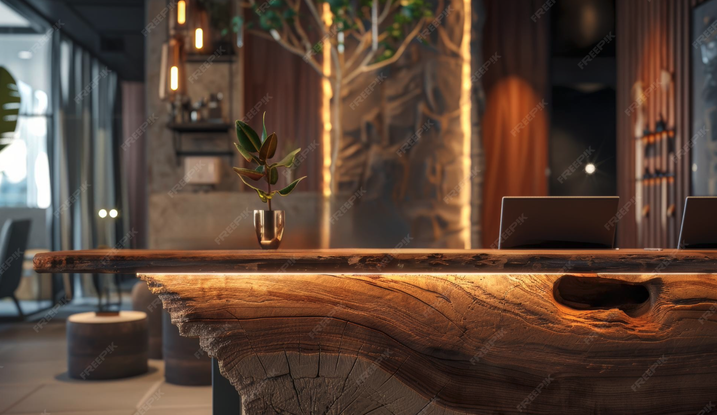 create front desk with reclaimed wood front as pictured