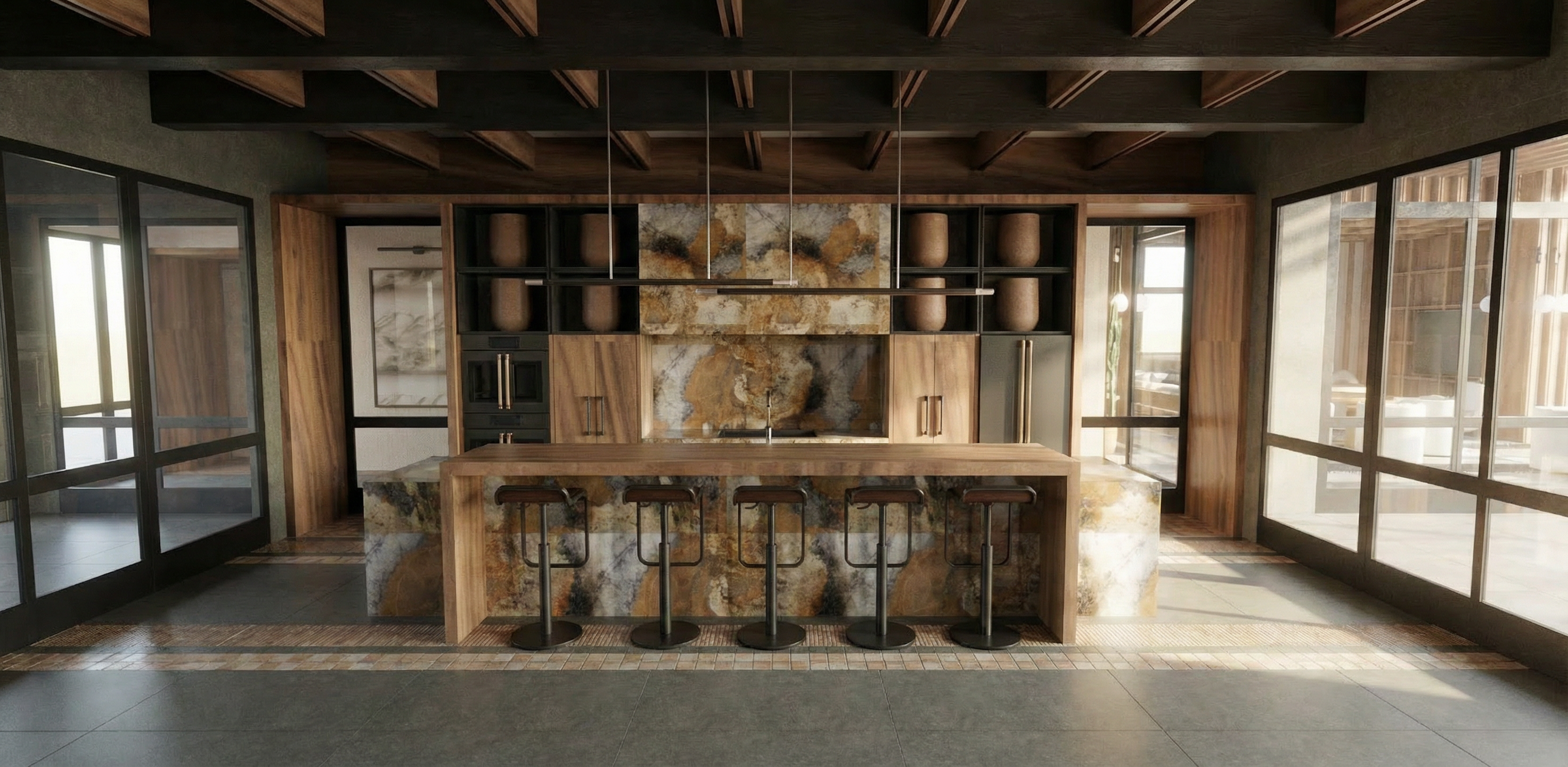 transitional modern space with clean rich colors