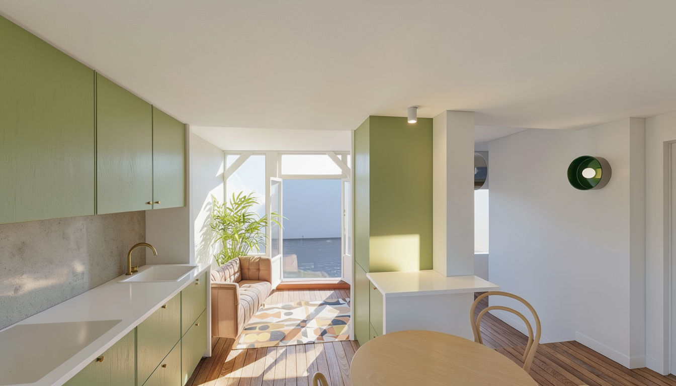 ultra realistic modern living room interior redesigned furniture layout stylish contemporary furniture warm natural daylight soft ambient lighting cozy and inviting atmosphere elegant materials refined wood textures modern sofa coffee table decorative elements minimalistic design balanced composition realistic shadows subtle imperfections soft reflections high end interior design photorealistic preserve room dimensions and structure but upgrade furniture and styling