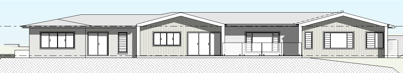 contemporary exterior shot render a modern single story house with a sleek contemporary design and a balanced color palette exterior walls light gray with a subtle texture roof medium gray with a matte finish windows and doors dark charcoal frames for contrast add a natural wood finish to the accent siding for warmth the front step area should have a stone texture in a lighter gray set the scene on a sunny day with a soft blue sky creating a welcoming and serene atmosphere include minimal landscaping with lush greenery to frame the composition architecture