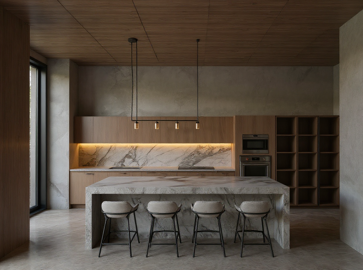 single sided bar or preparation done style in a contemporary way add in mini bar fridge