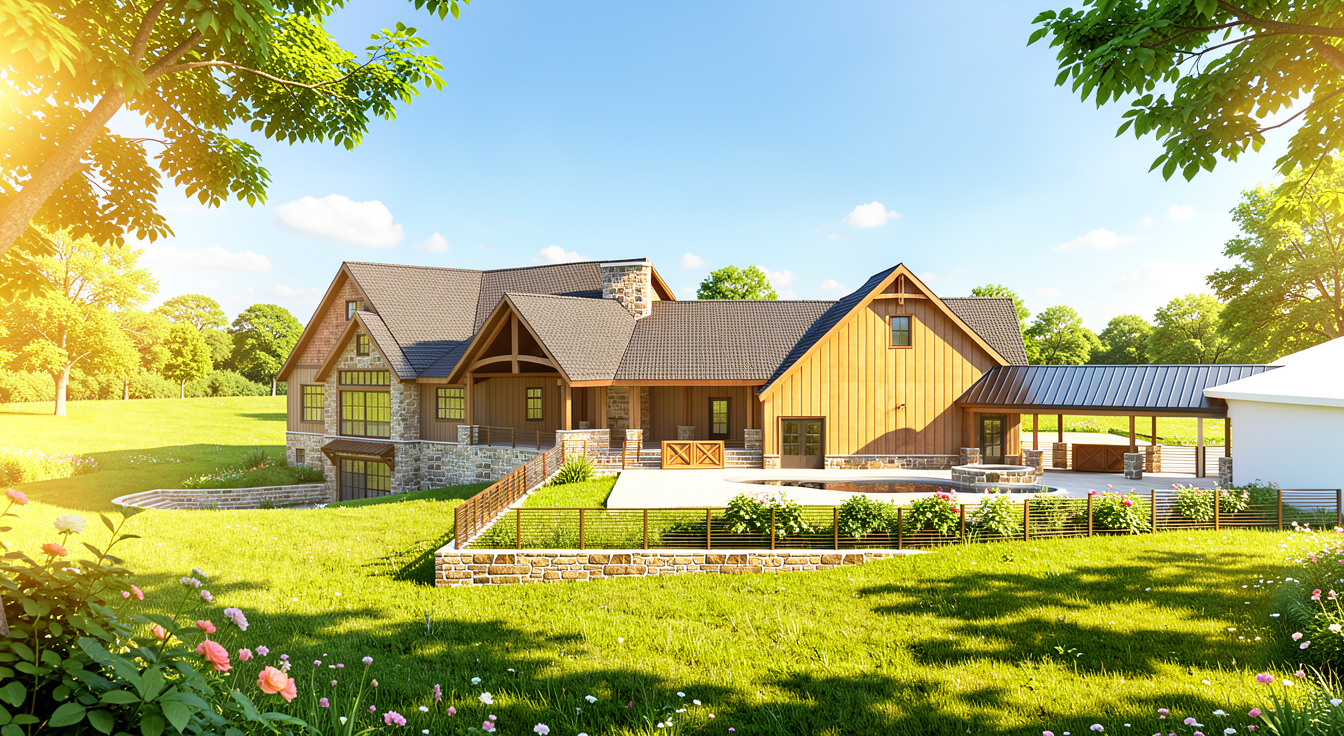 peux tu me cr er un rendu r aliste a partir de cette image de maison je voudrais que tu conserve la maison sur l image tel quel mais que tu ajoute des mat riaux et que tu la rende r aliste dans un beau d cors am nag stp