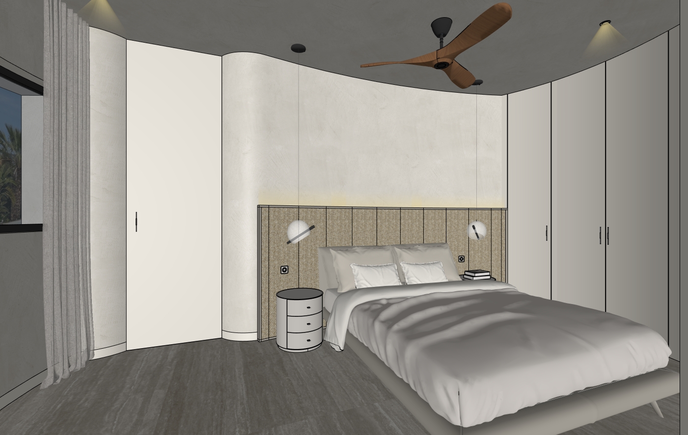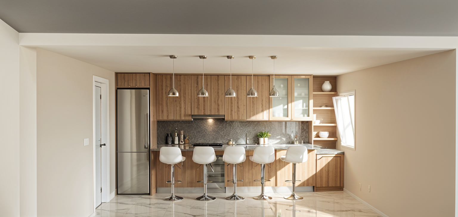 interior contempor neo sofisticado com piso em travertino natural de tom bege claro acabamento acetinado e veios suaves bem vis veis paredes em branco quente com textura leve e detalhes minimalistas inclua ventilador de teto em madeira natural com design moderno e p s largas acabamento fosco e estrutura discreta em preto ou bronze escovado ilumina o natural abundante entrando por janelas amplas luz suave de fim de tarde criando sombras delicadas sobre o piso de travertino mobili rio minimalista em tons neutros sof em linho claro mesa de centro em madeira natural e elementos decorativos org nicos atmosfera elegante clean e acolhedora render ultra realista alta defini o ilumina o cinematogr fica