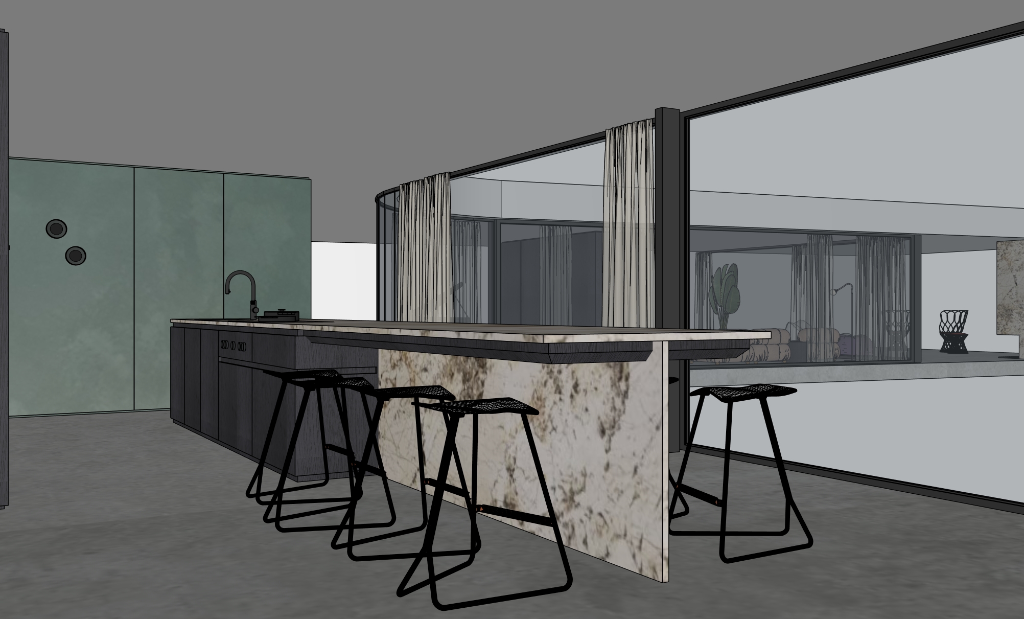 make this sketchup drawing photorealistic can you make the wood a little more darkbrown black