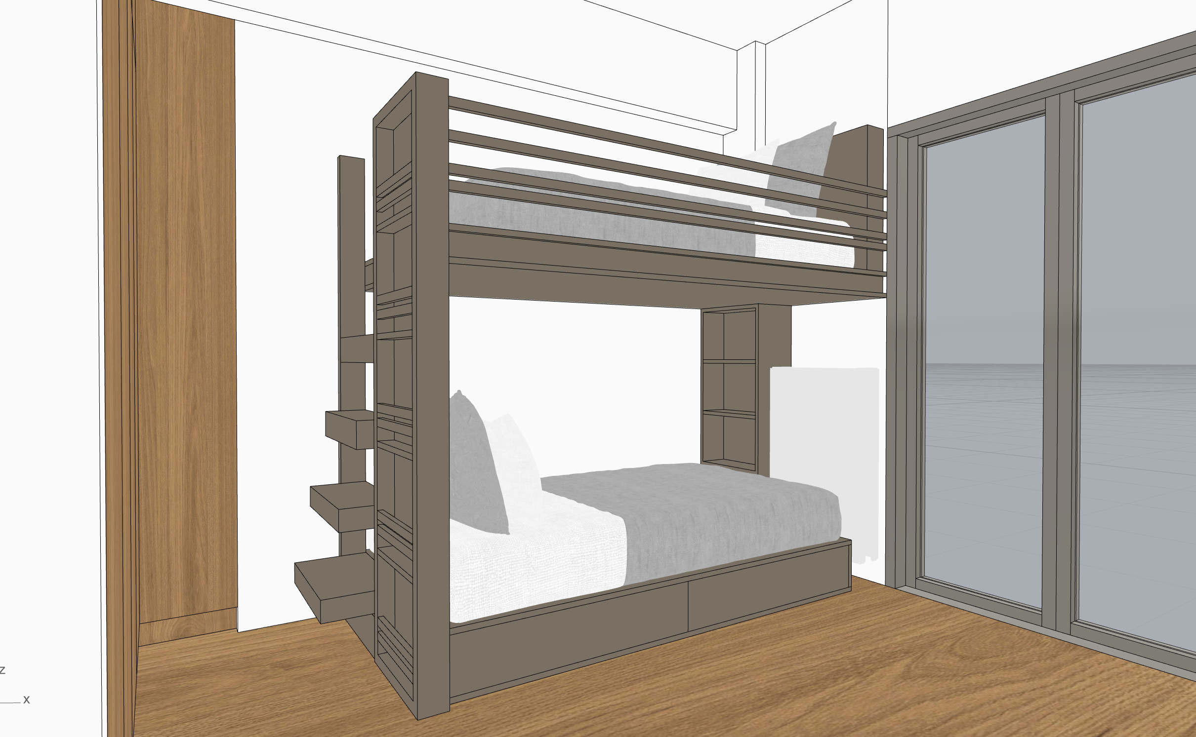 it is a girl s bedroom do it a light pal pink color with beige wall colors wooden floor and wooden wardrobe add books and decorative items a round light carpet on floor