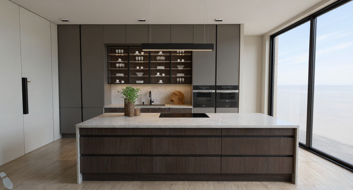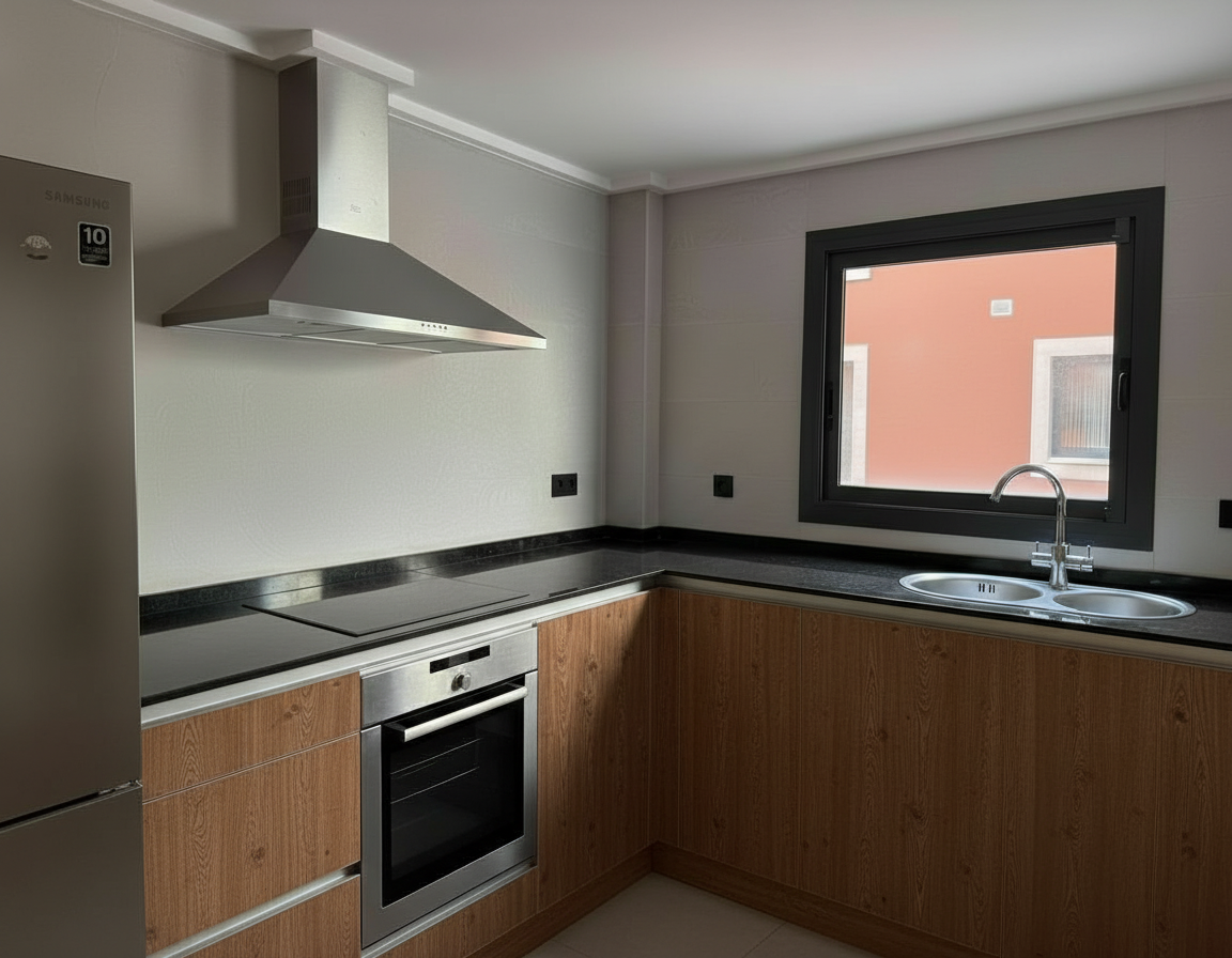 light grey kitchen window over countertop