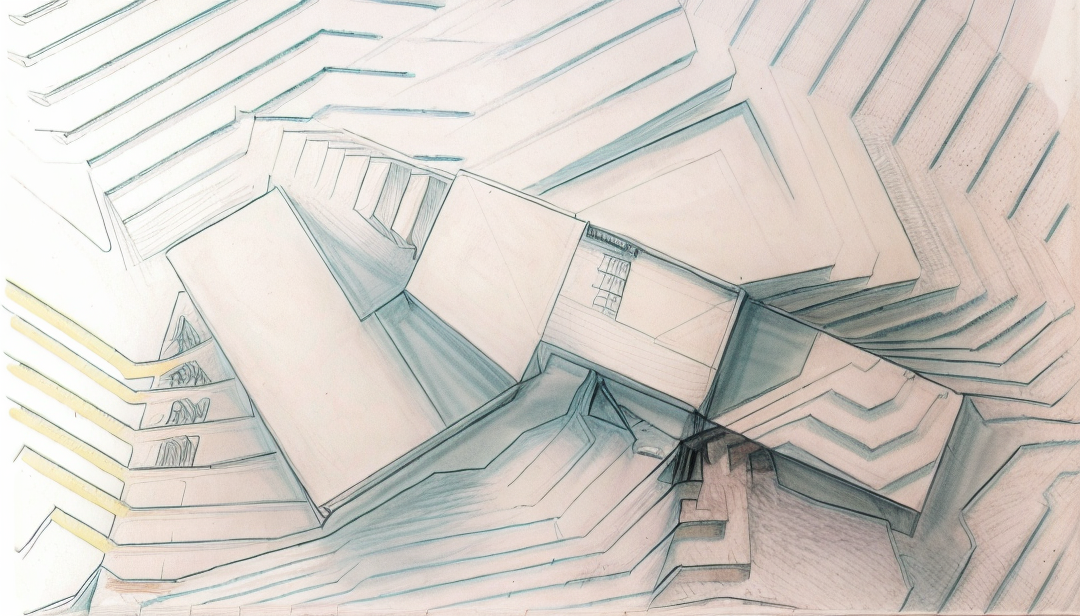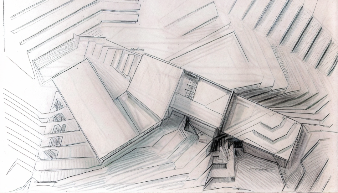 exterior shot architectural ink line sketch from this photo two tone only binary palette pure black 000000 strokes on pure white ffffff background no gray pixels outline only 0 fill 100 stroke unlit no lighting or shadows keep only the main volumes and the stepped site contours remove wood grain textures and all tonal shading stroke hierarchy outer silhouette 3 px inner edges 1 5 2 px continuous closed paths slight hand wobble no hatching no cross hatching no stippling no gradients crisp vector like cad quality lines