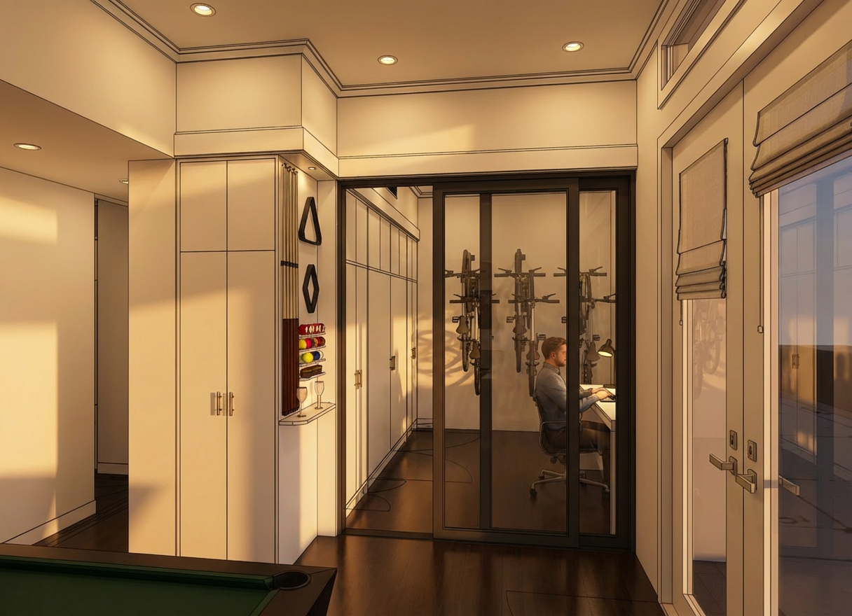 minimalism exterior shot ultra realistic interior rendering of a modern minimalist living and kitchen space design style minimalist warm modern materials are clearly defined flooring light wood vinyl flooring cabinetry matte white cabinets with clean flat panels countertop light grey quartz walls smooth white paint with light wood feature panel sofa cream fabric sofa soft texture accents black metal details subtle decor lighting soft natural daylight entering from balcony diffused lighting no harsh shadows warm and even illumination composition wide angle shot eye level perspective diagonal view from kitchen towards living room spacious and clean layout details highly detailed textures realistic shadows soft reflections clean styling minimal clutter modern lifestyle feel render quality 8k resolution photorealistic architectural photography global illumination ray tracing mood calm warm cozy airy scandinavian inspired shot on 24mm lens depth of field natural color grading hdr magazine quality interior photography architecture