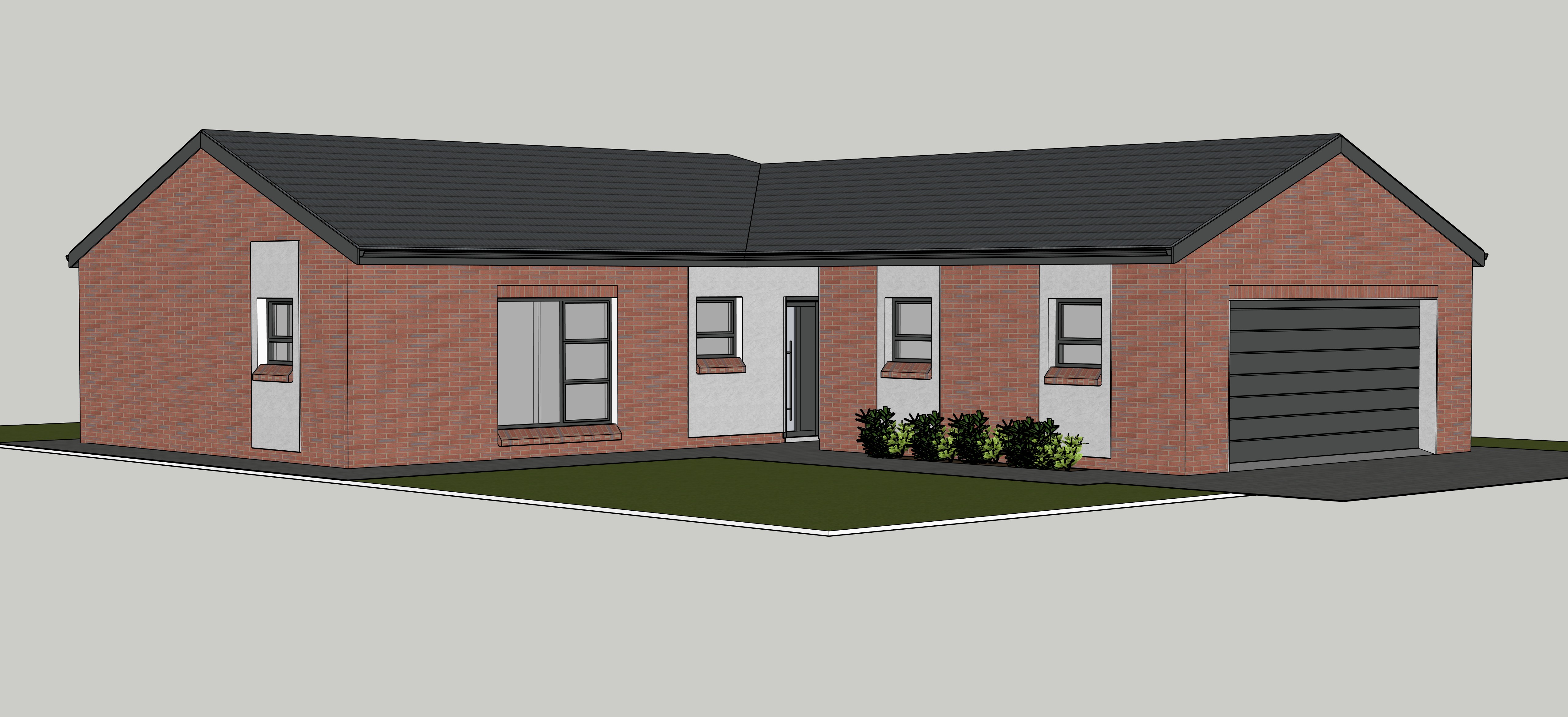 a manicured lawn layered flower beds low maintenance shrubs native plants stone pathway leading to the entrance sun late afternoon and some clouds no shadows on the house
