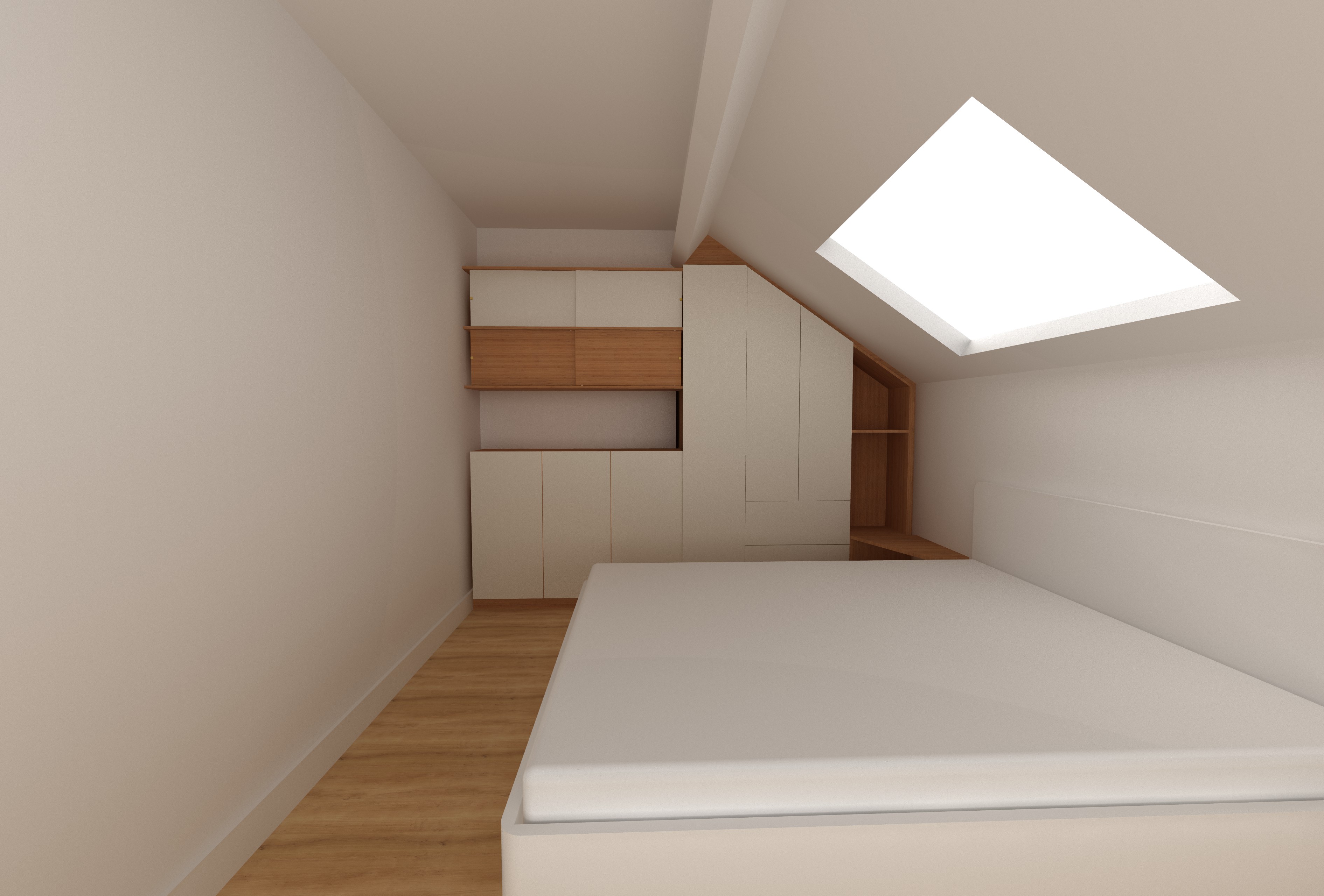 bring soft natural light fill the right shelves with few decoration it s a guess sleeping room