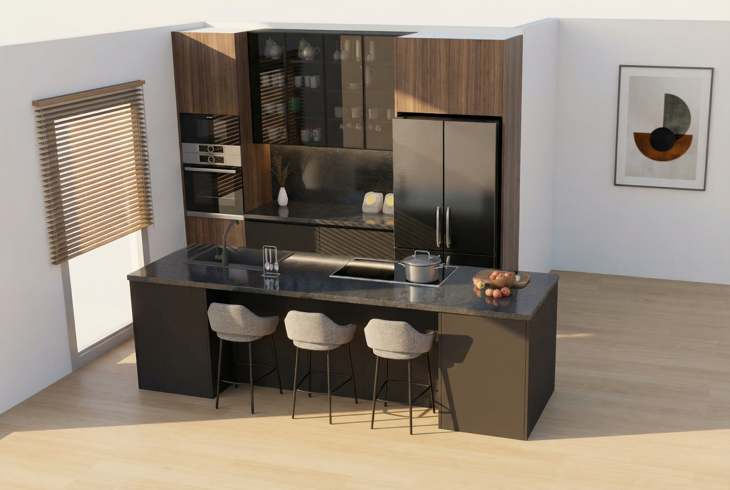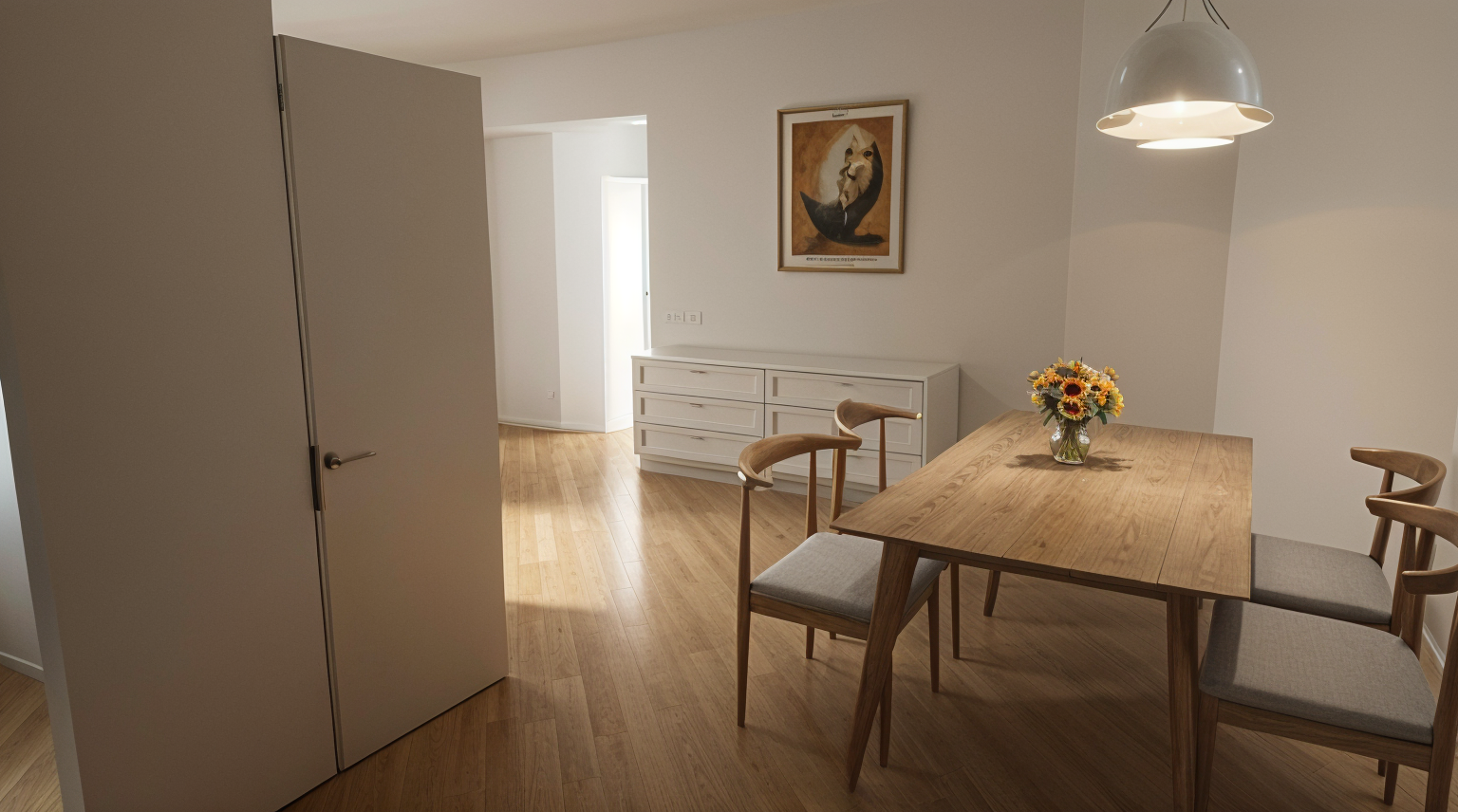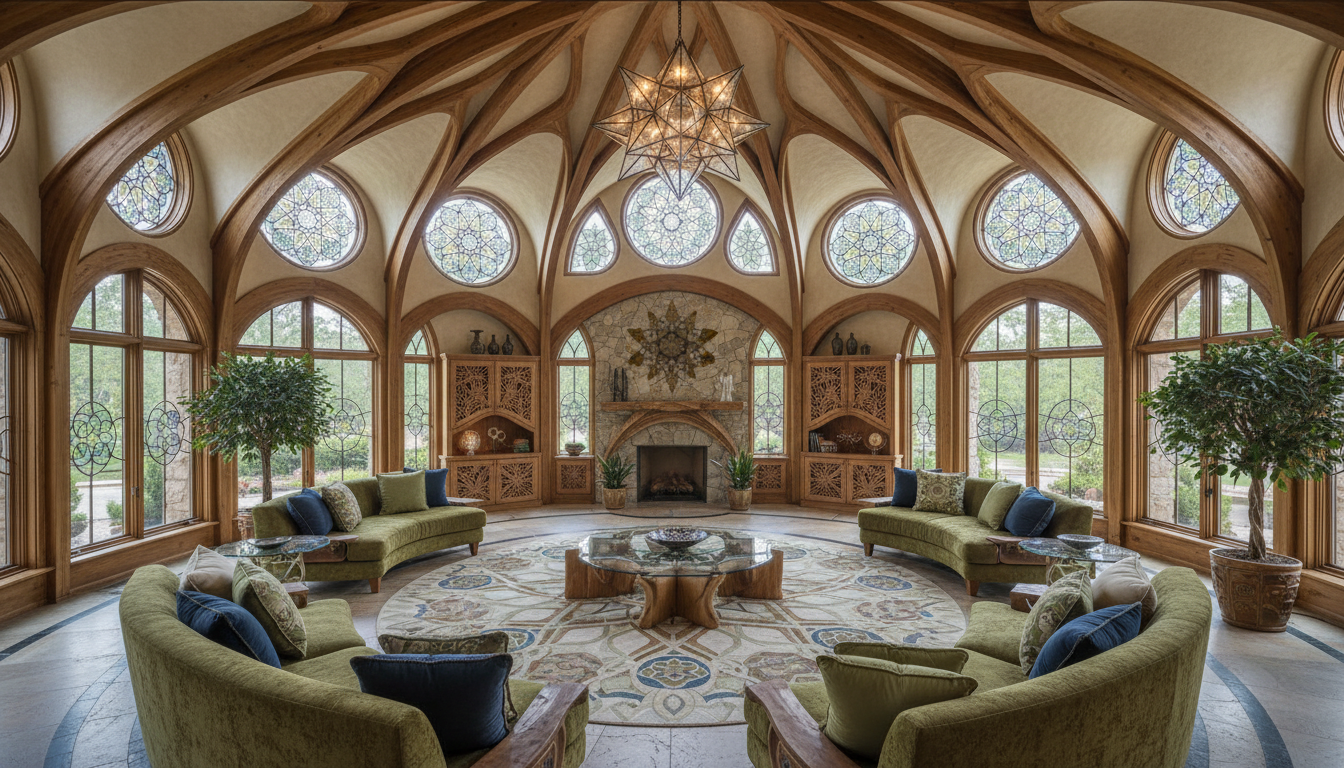 create a beautiful scene of an elegant countryside villa with rustic red brown bricks and a terracotta roof surrounded by lush vibrant green lawns and trees the atmosphere is serene and peaceful with a clear blue sky and soft natural sunlight casting gentle shadows the paved driveway should be a smooth muted gray lined with neatly trimmed grass and ornamental plants with soft purples and pinks add slender elegant cypress trees for a touch of mediterranean charm