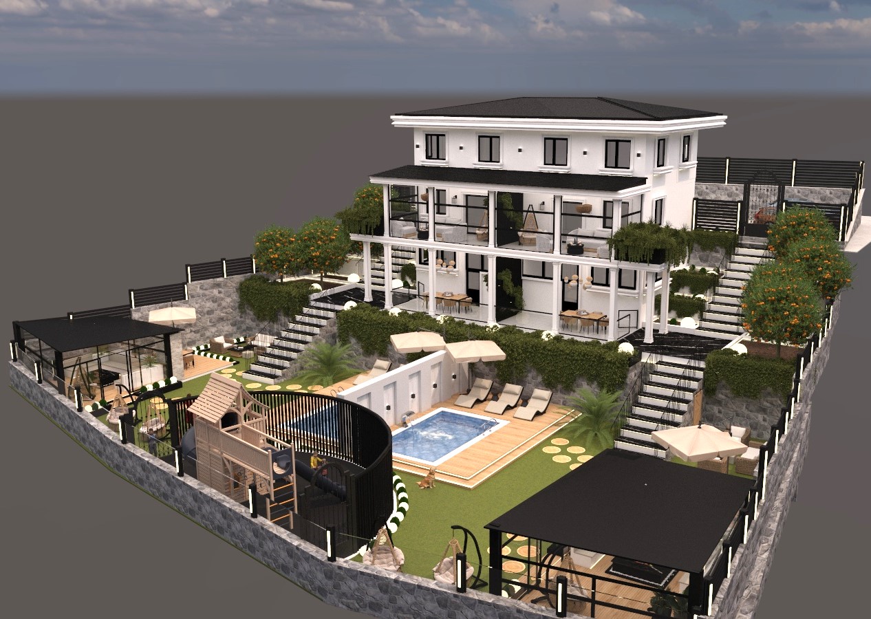 this is an exterior fa ade render do not change or modify any colors fa ade materials textures patterns window frames railings balcony design architectural elements landscaping elements or object dimensions keep the building model proportions material colors and all details exactly the same as the original design only improve the lighting realism and render quality enhance global illumination soft shadows reflections on glass surfaces material clarity and overall depth improve the sharpness atmospheric realism and natural daylight balance without altering any colors or materials do not reinterpret or redesign the fa ade only make the final image more realistic brighter clearer and visually high quality while keeping everything else unchanged make the exterior fa ade render more realistic by turning on all existing lights use the same model materials and colors without any changes make every light fixture and led strip emit warm white light 2700 3000k with realistic glow reflections and global illumination on nearby surfaces keep the same camera angle and do not modify any architectural elements only improve the lighting and realism