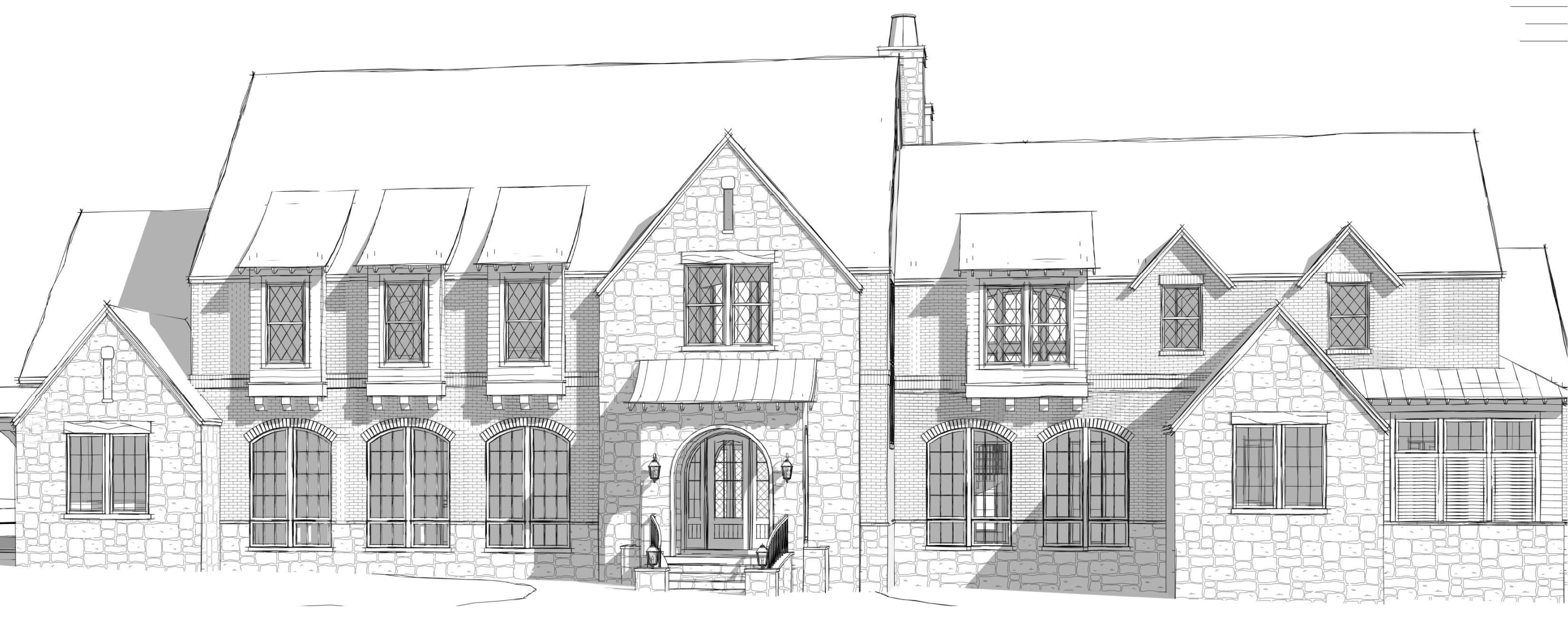 all siding at dormers and trim and timber columns to be blackish brown black slate roof black standing seam at metal roof in dormers black window frames off white and dark gray stone