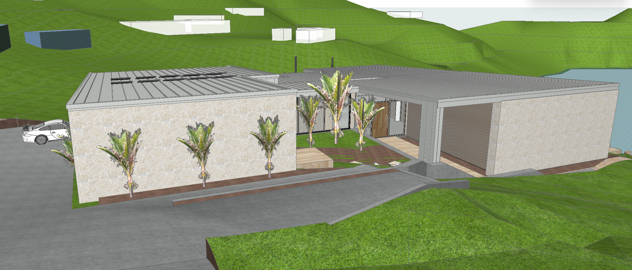 no shadow light schist stone concrete driveway