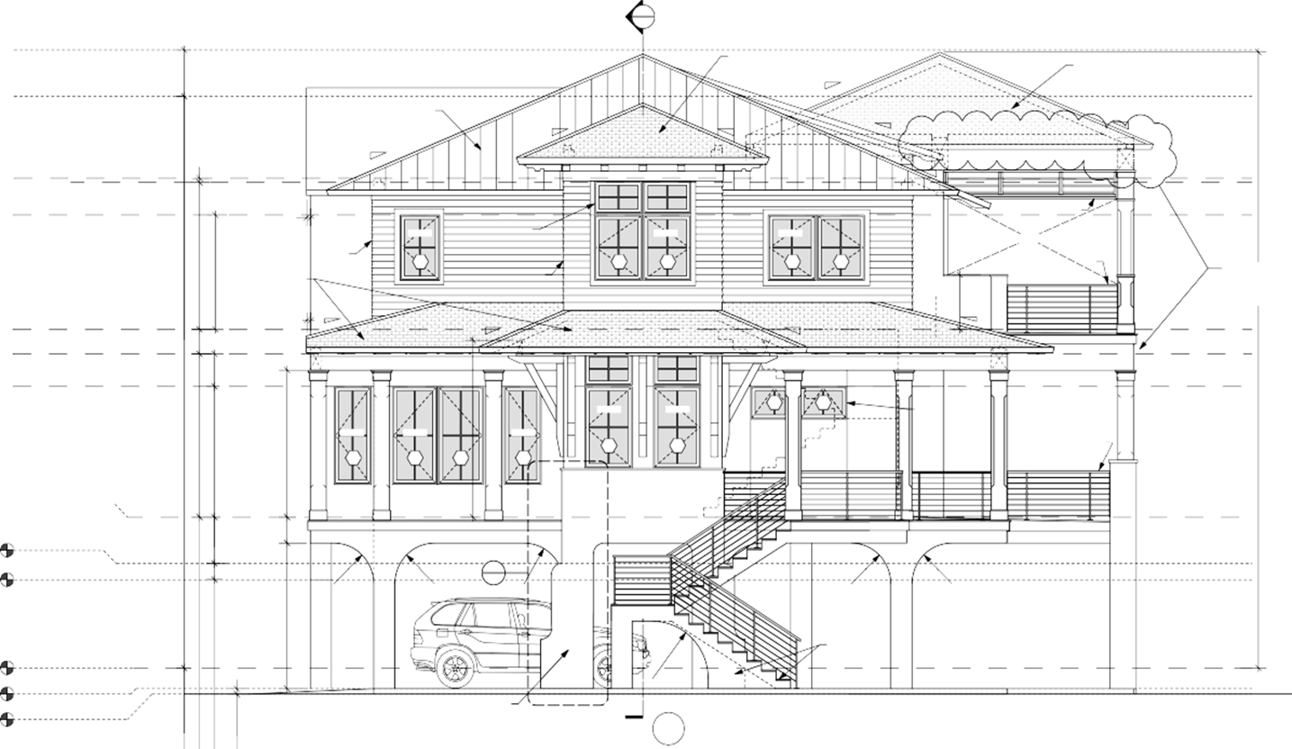 need to render this elevation black windows and door frames with black gutters and railing make the body of house greek villa from sherwin williams roof needs to be mix of standing seam beige metal roof and light wood shingles can you add some accents of sage beach green on the horizontal siding