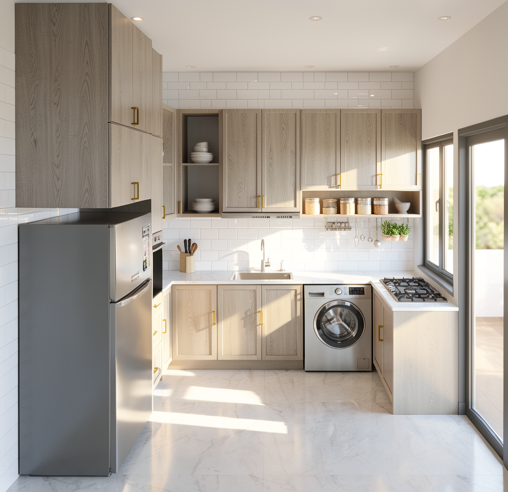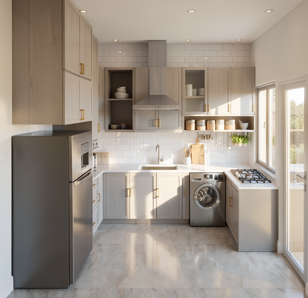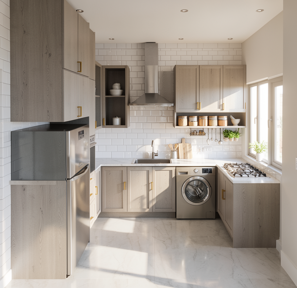 hardwood timber flooring shaker profile cabinetry neutral paint scheme